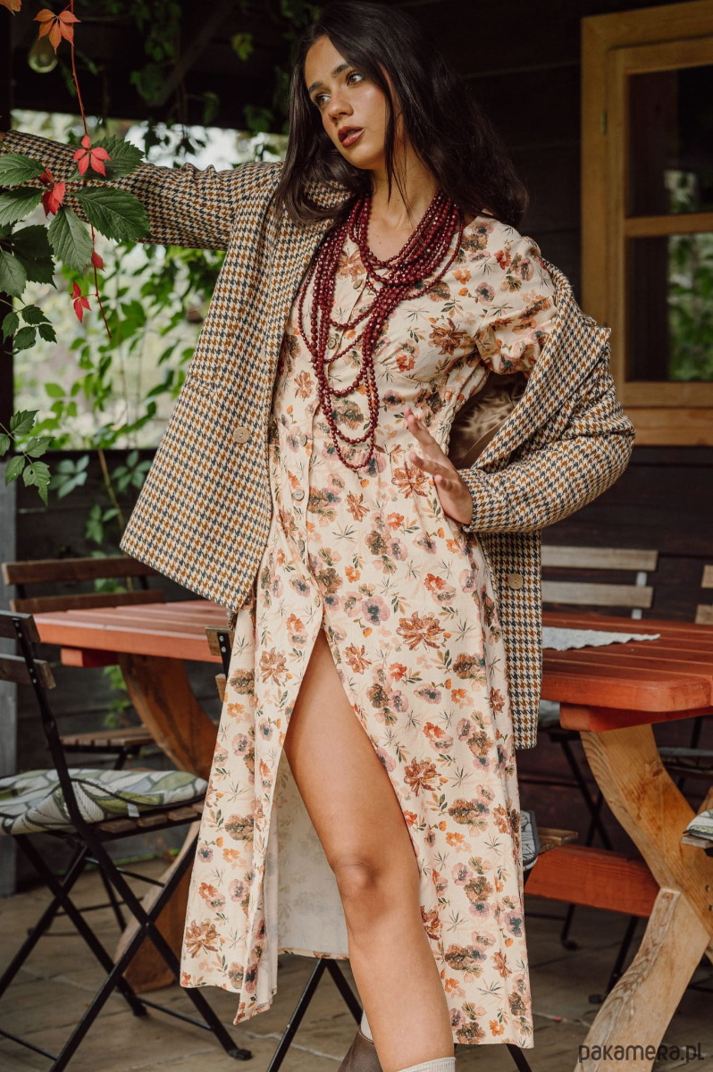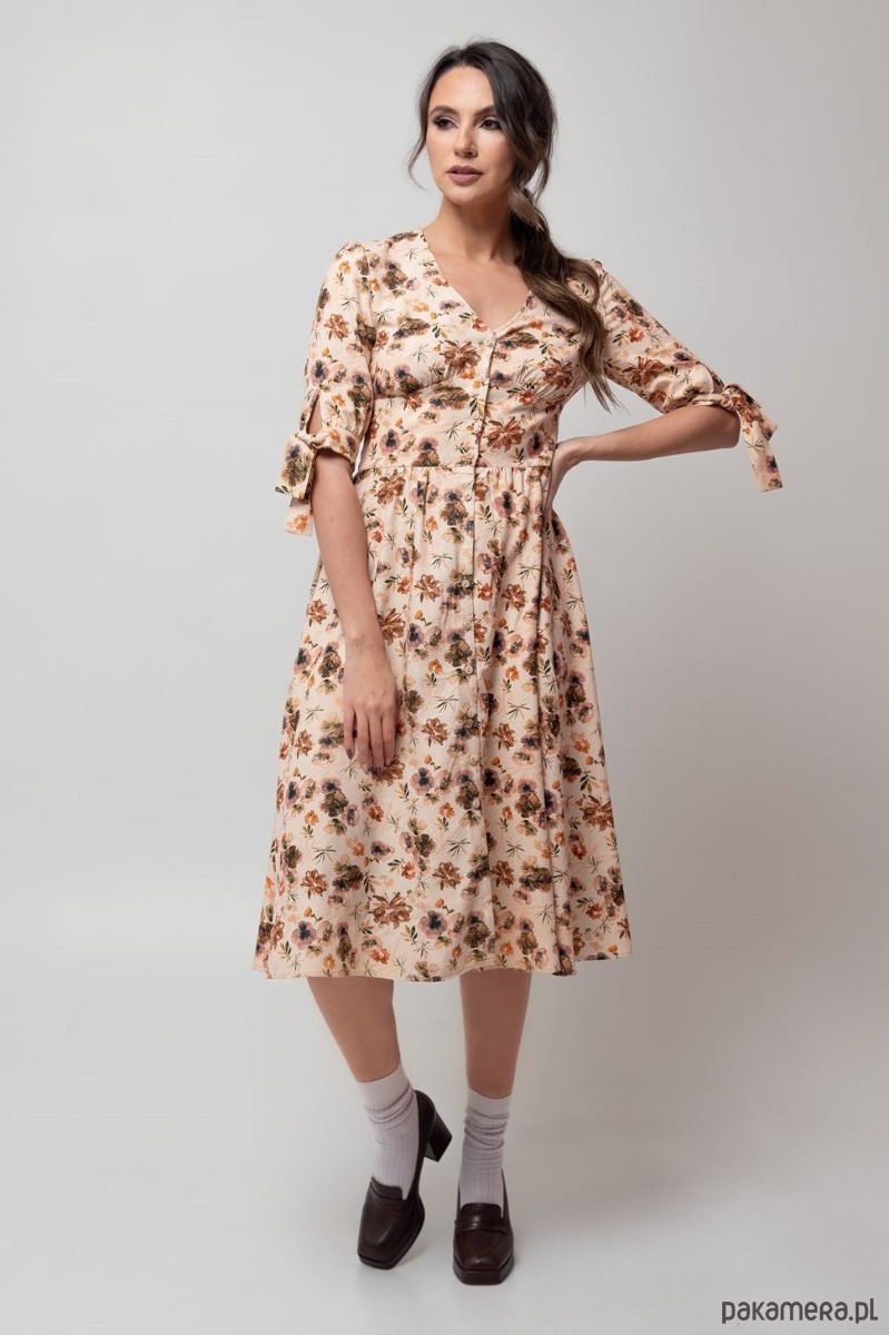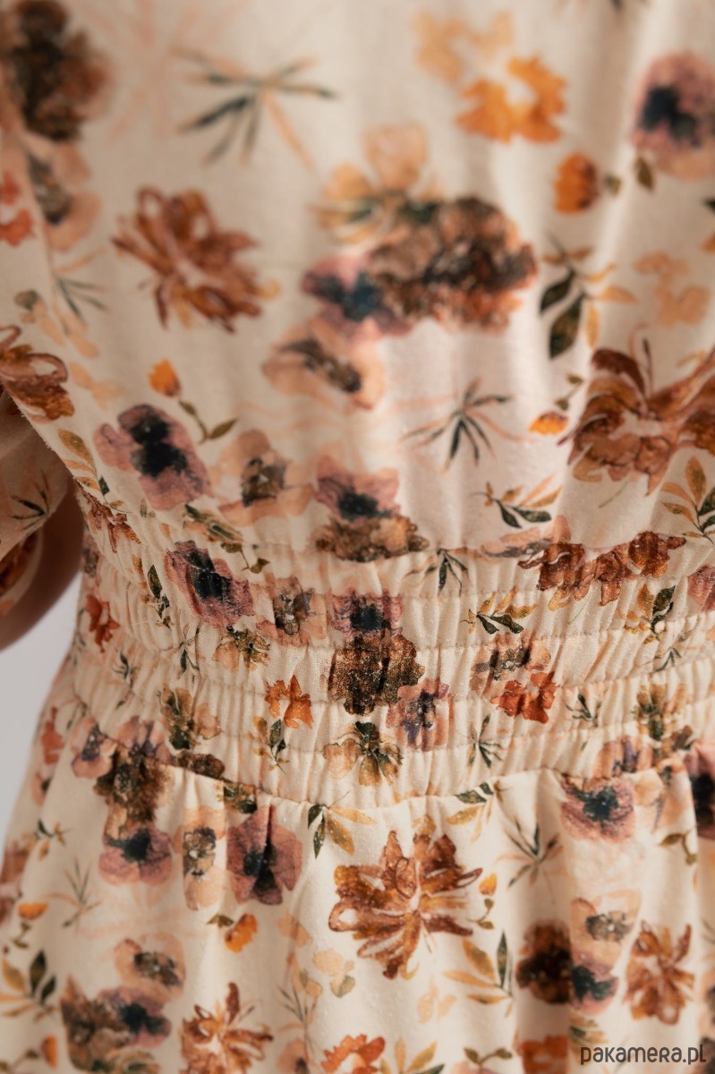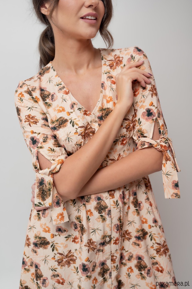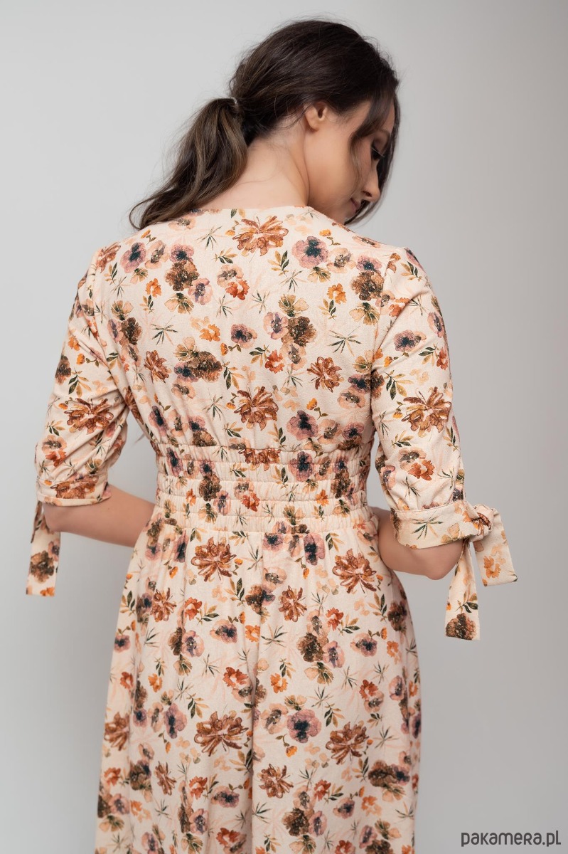 Sukienka z jedwabiu surowego naturalnego drukowanego w piękny kwiecisty wzór.