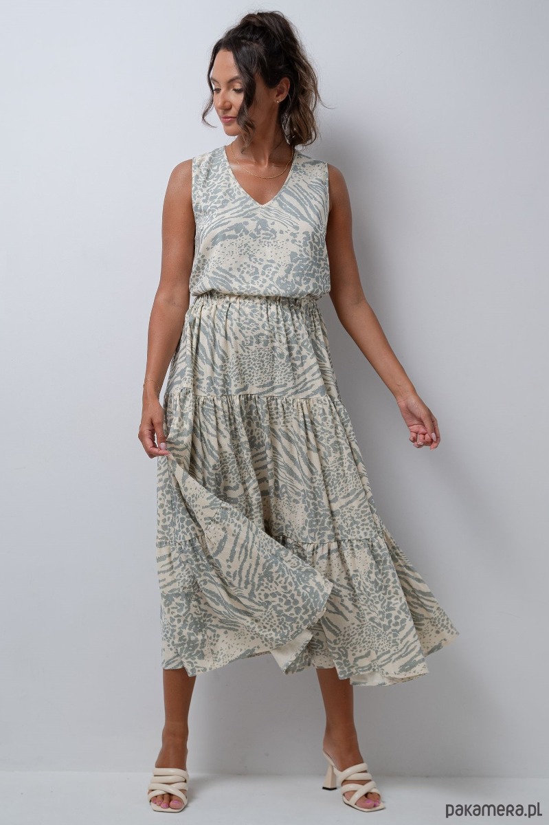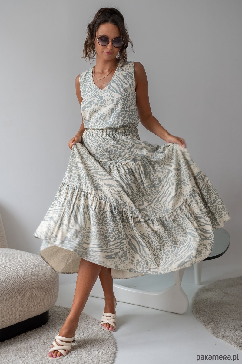 Szeroka spódnica z jedwabiu surowego naturalnego drukowanego w bardzo modny wzór zeberki.