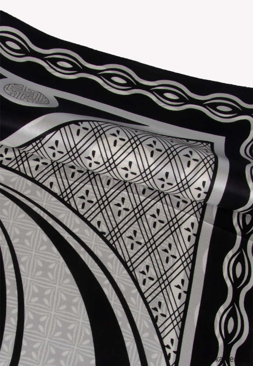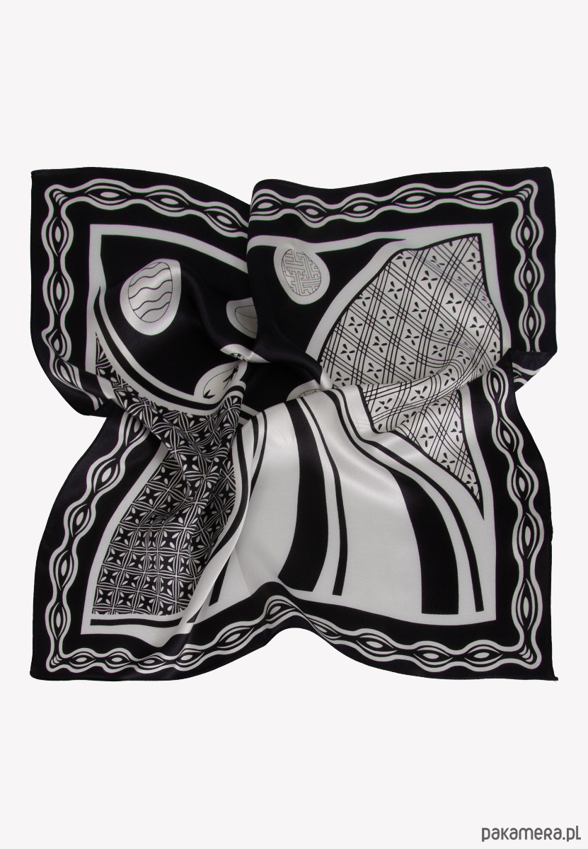 Ta jedwabna gawroszka wyróżnia się graficznym, czarno-białym wzorem o abstrakcyjnej kompozycji. Geometryczne kształty, dynamiczne linie i detale inspirowane sztuką op-art nadają jej nowoczesny, artystyczny charakter. Kontrastowa kolorystyka podkreśla wyrazisty design, czyniąc ją efektownym dodatkiem do minimalistycznych i klasycznych stylizacji. To idealny wybór dla osób ceniących unikatowe akcesoria z nutą awangardy.