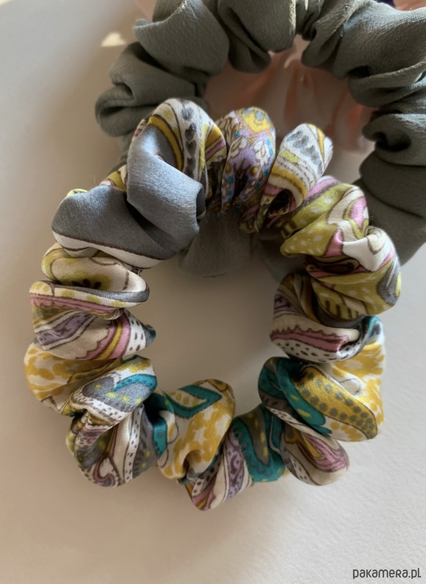 Jedwabna gumka scrunchie Irene w wersji mini doda charakteru każdej stylizacji – od codziennej po bardziej elegancką.Wyjątkowe połączenie kolorów z pewnością przyciągnie wiele spojrzeń.