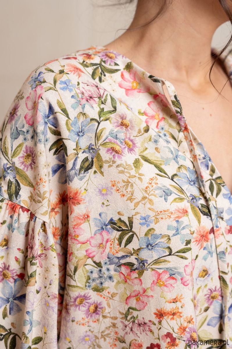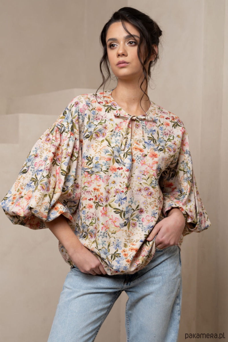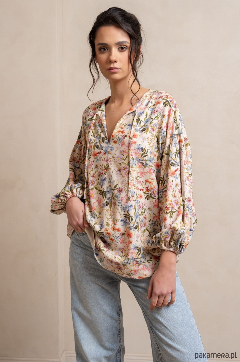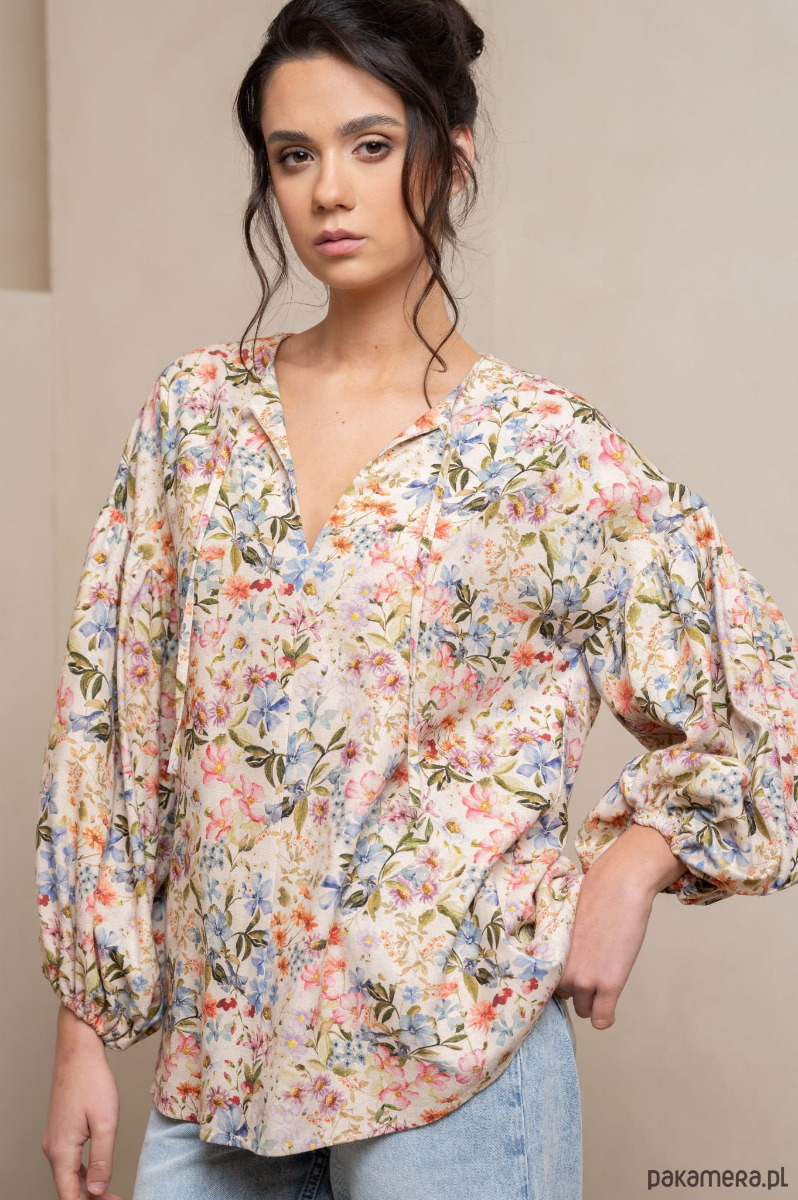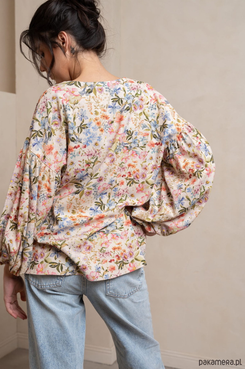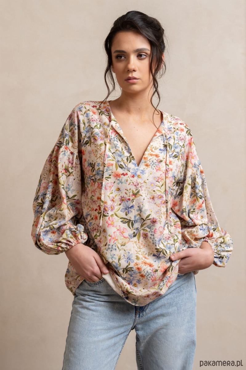 Odkryj pełen wdzięku i luzu świat stylu boho dzięki naszej koszuli w kwiatowy wzór z bufiastymi rękawami. Ten modny, kobiecy i wolny styl łączy w sobie elementy natury, swobody i indywidualizmu, idealnie oddając esencję letnich dni.