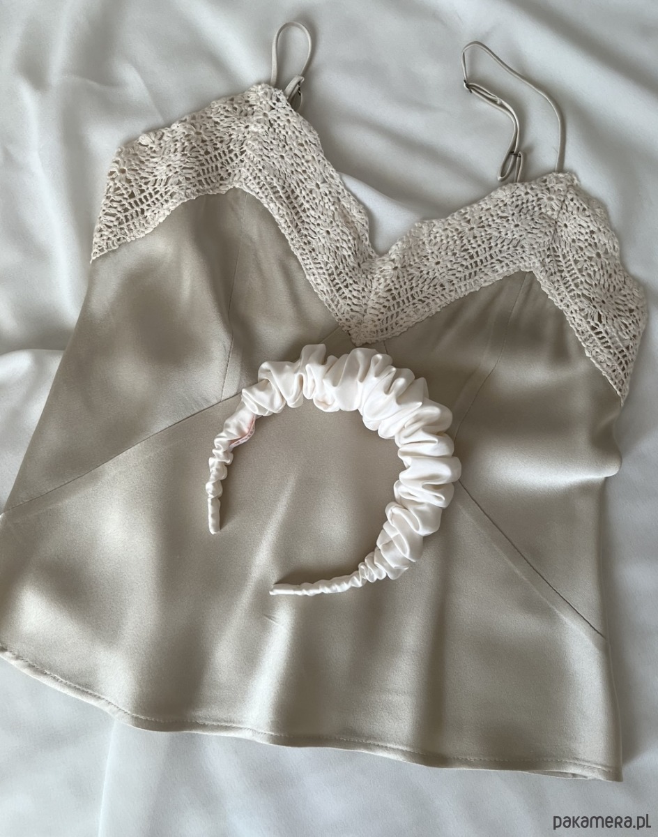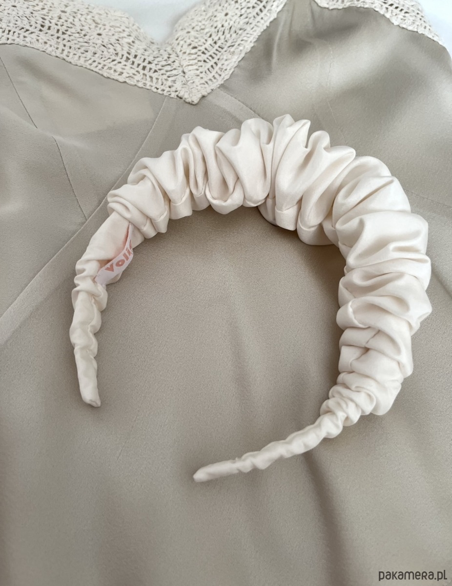 Jedwabna marszczona opaska Amy w kolorze ecru