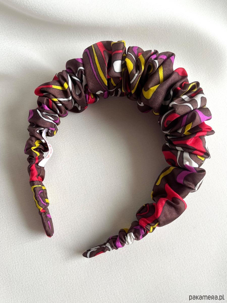 Jedwabna marszczona opaska Joy w wersji maxi to oryginalny i wyrazisty dodatek, który doda charakteru każdej stylizacji – od codziennej po bardziej elegancką.