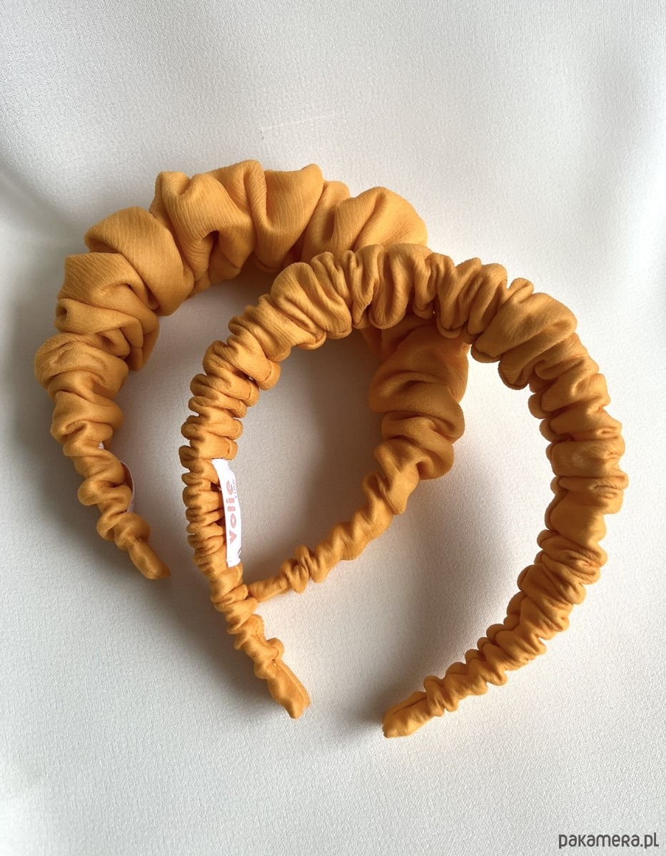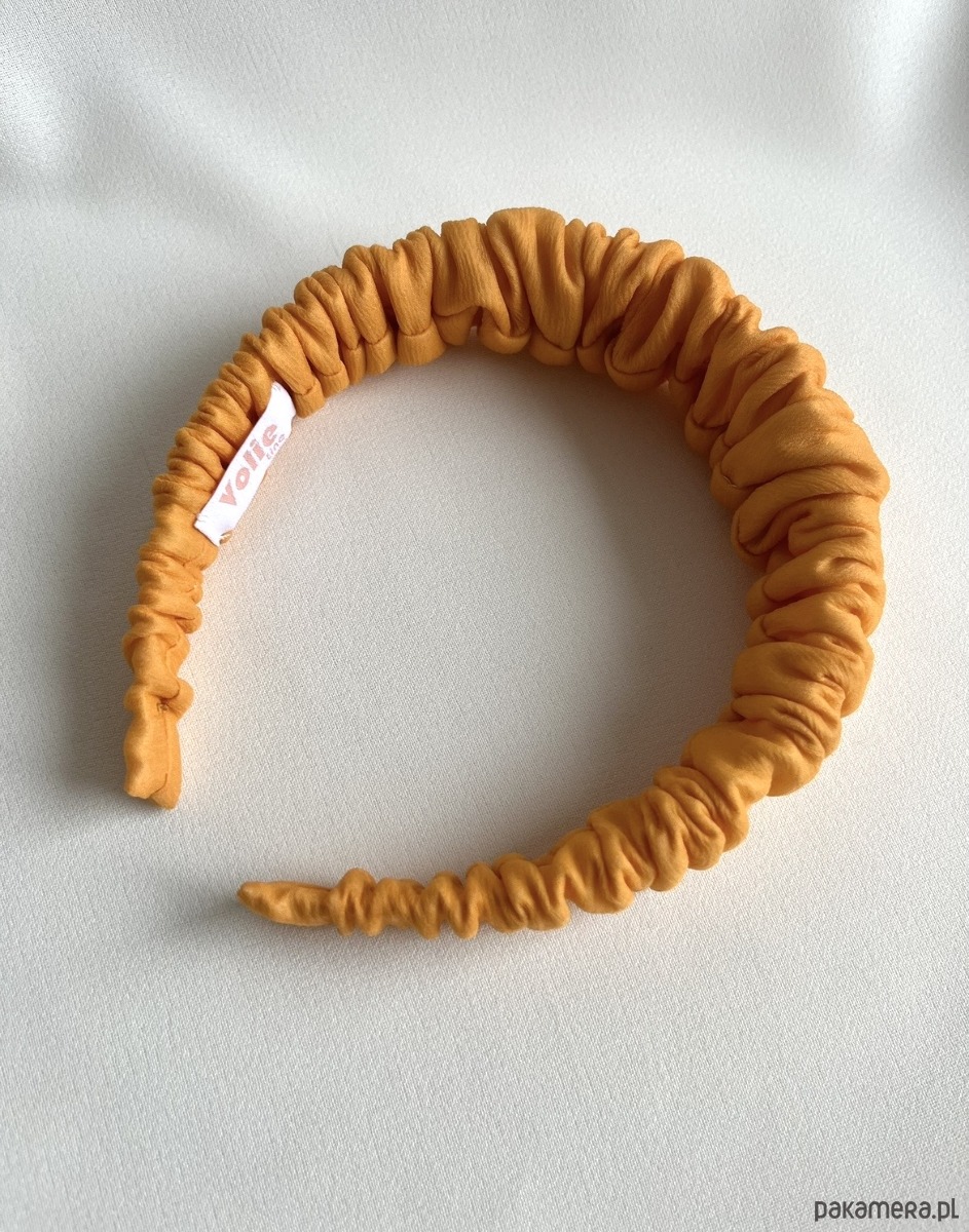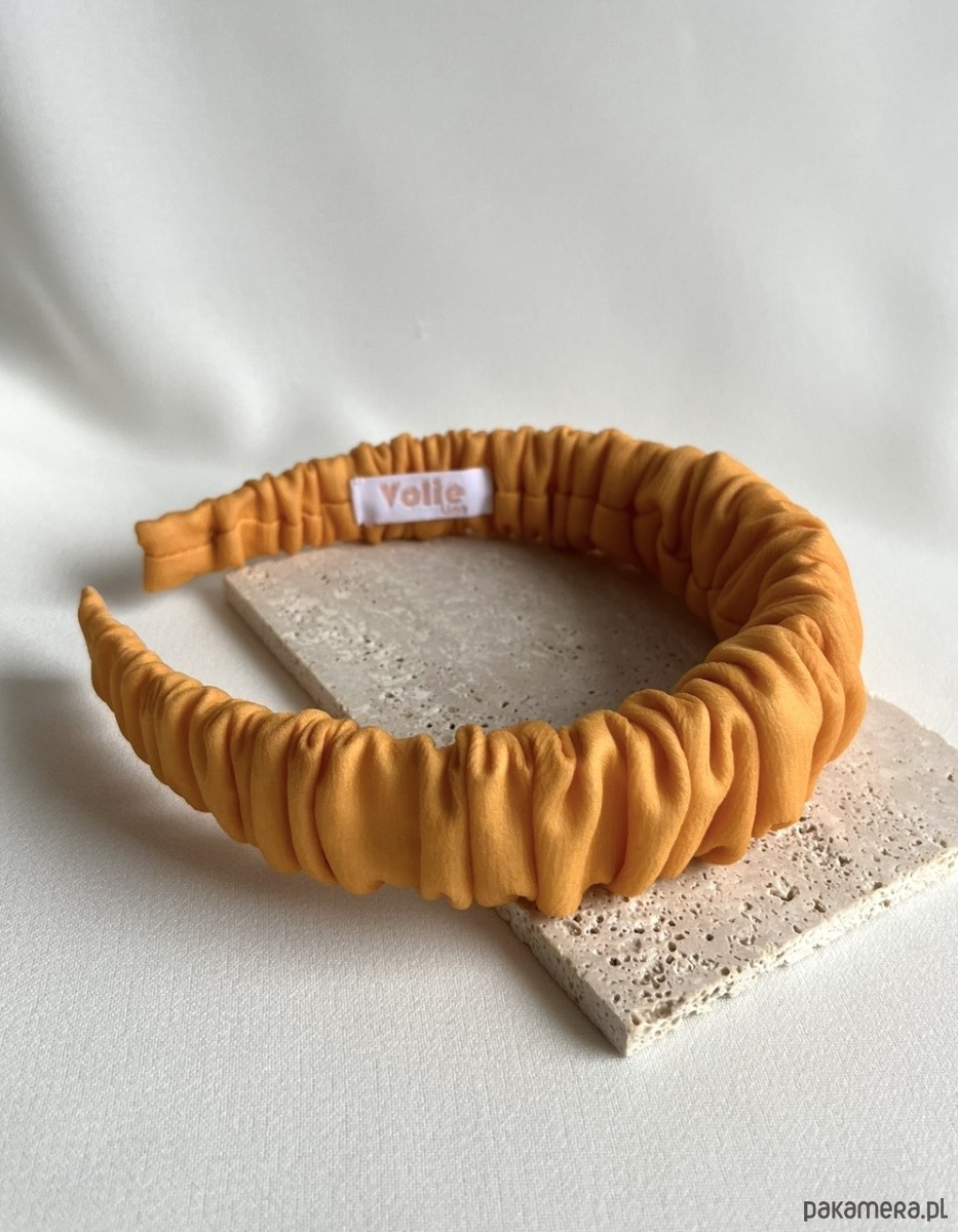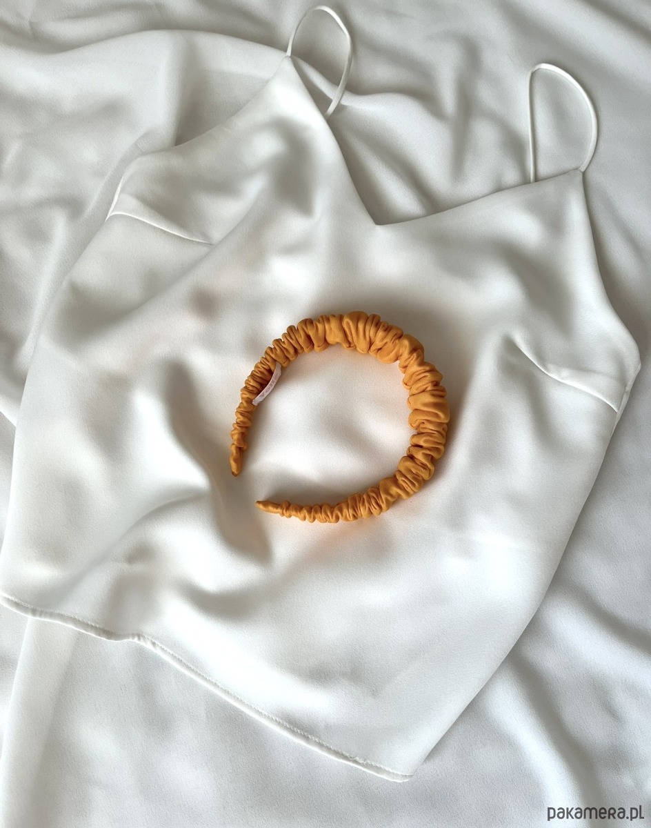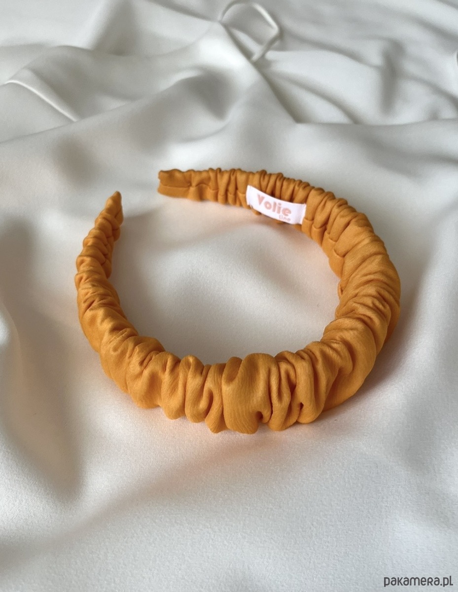 Jedwabna marszczona opaska Orange Blossom w wersji standard to oryginalny i wyrazisty dodatek, który doda charakteru każdej stylizacji – od codziennej po bardziej elegancką.
