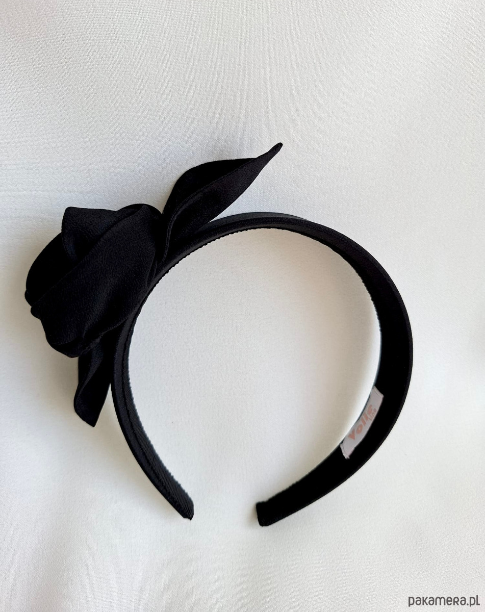 Jedwabna opaska do włosów Black Rose z ozdobną różą - szerokość 4 cm