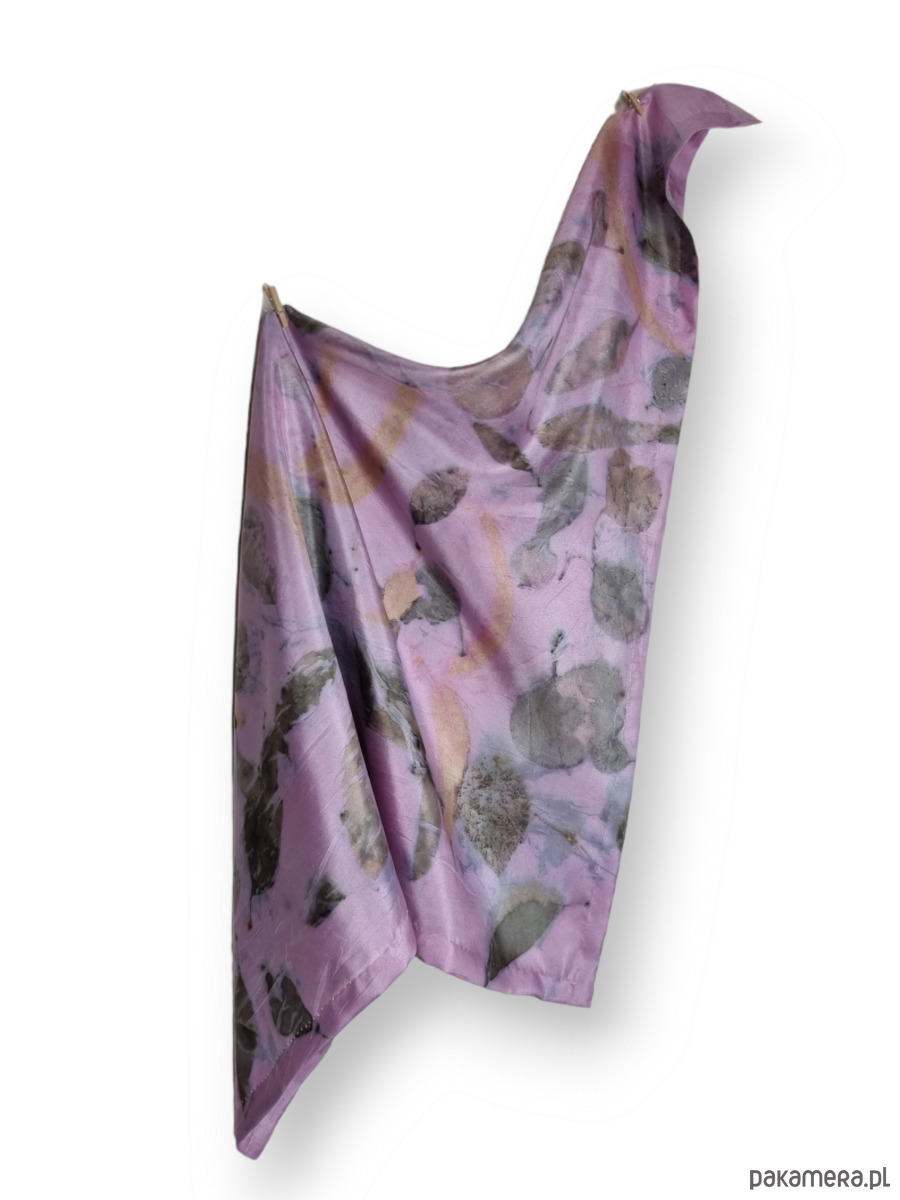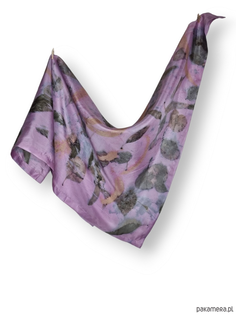 Apaszka jedwabna - 100% jedwab naturalny - tkanina - satyna jedwabna. Ekoprint na jedwabiu.