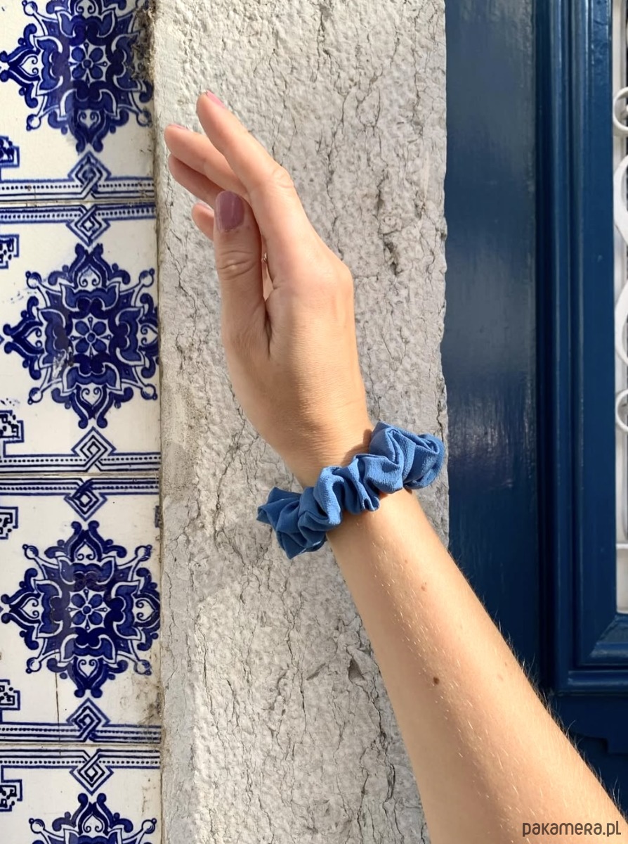 Jedwabna niebieska scrunchie Blue to subtelny dodatek, który pięknie przyozdobi Twoje włosy. Milutka i lekka jak chmurka.
