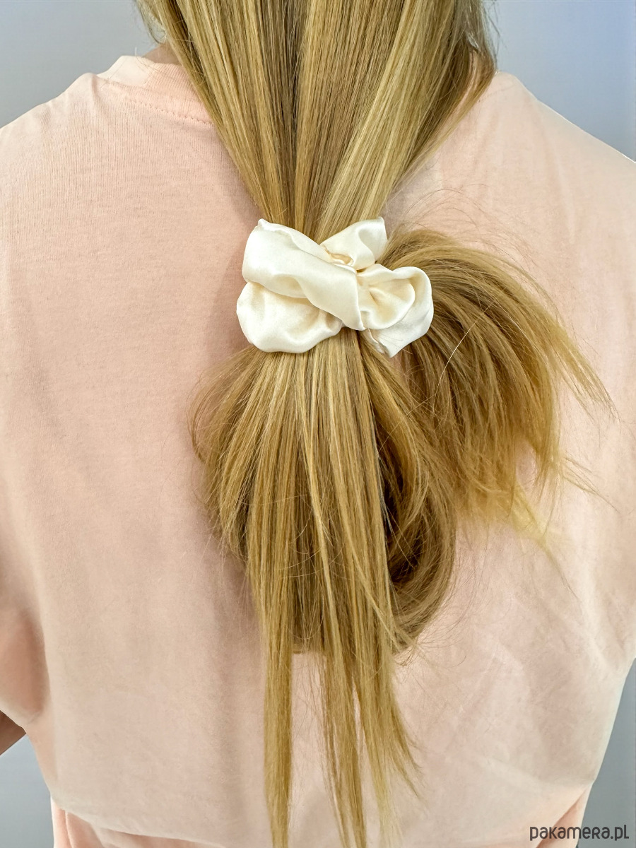 Jedwabna scrunchie gumka frotka midi szampańska