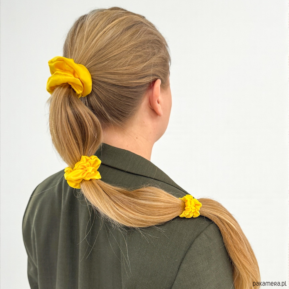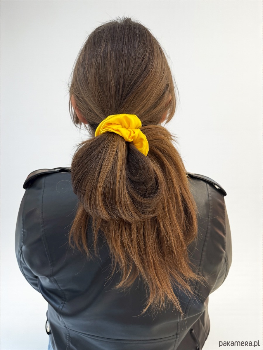 Jedwabna scrunchie gumka frotka midi żółta