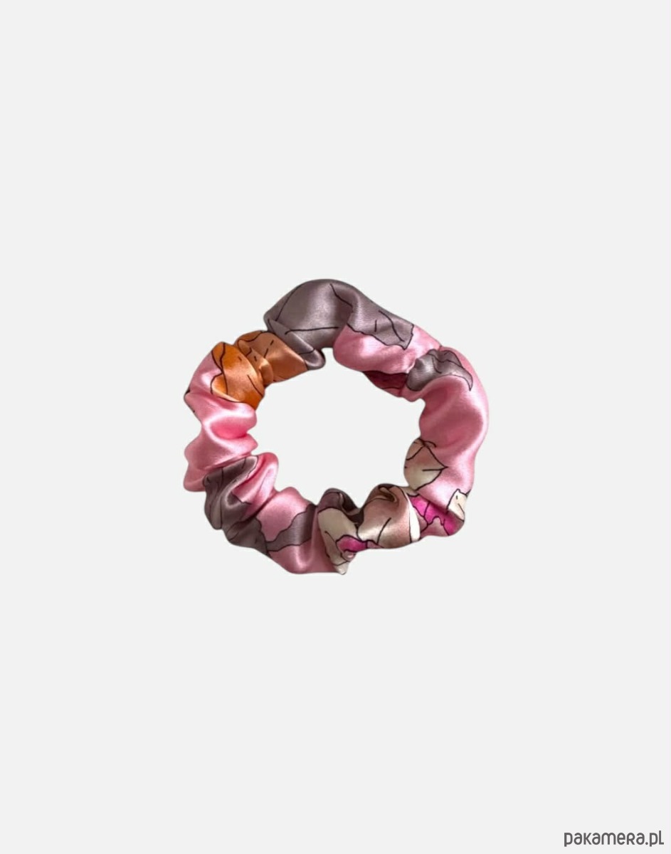 Jedwabna scrunchie gumka frotka mini kwiaty różowa