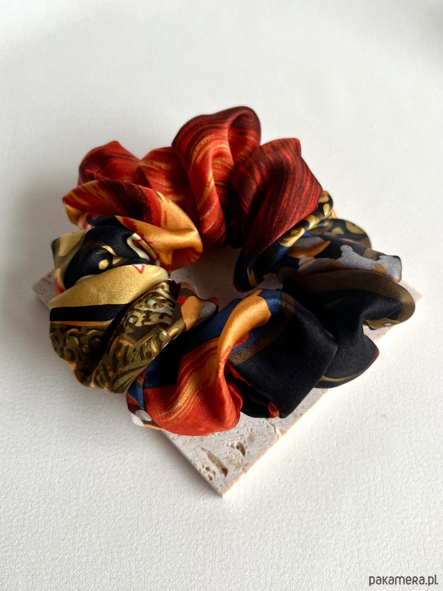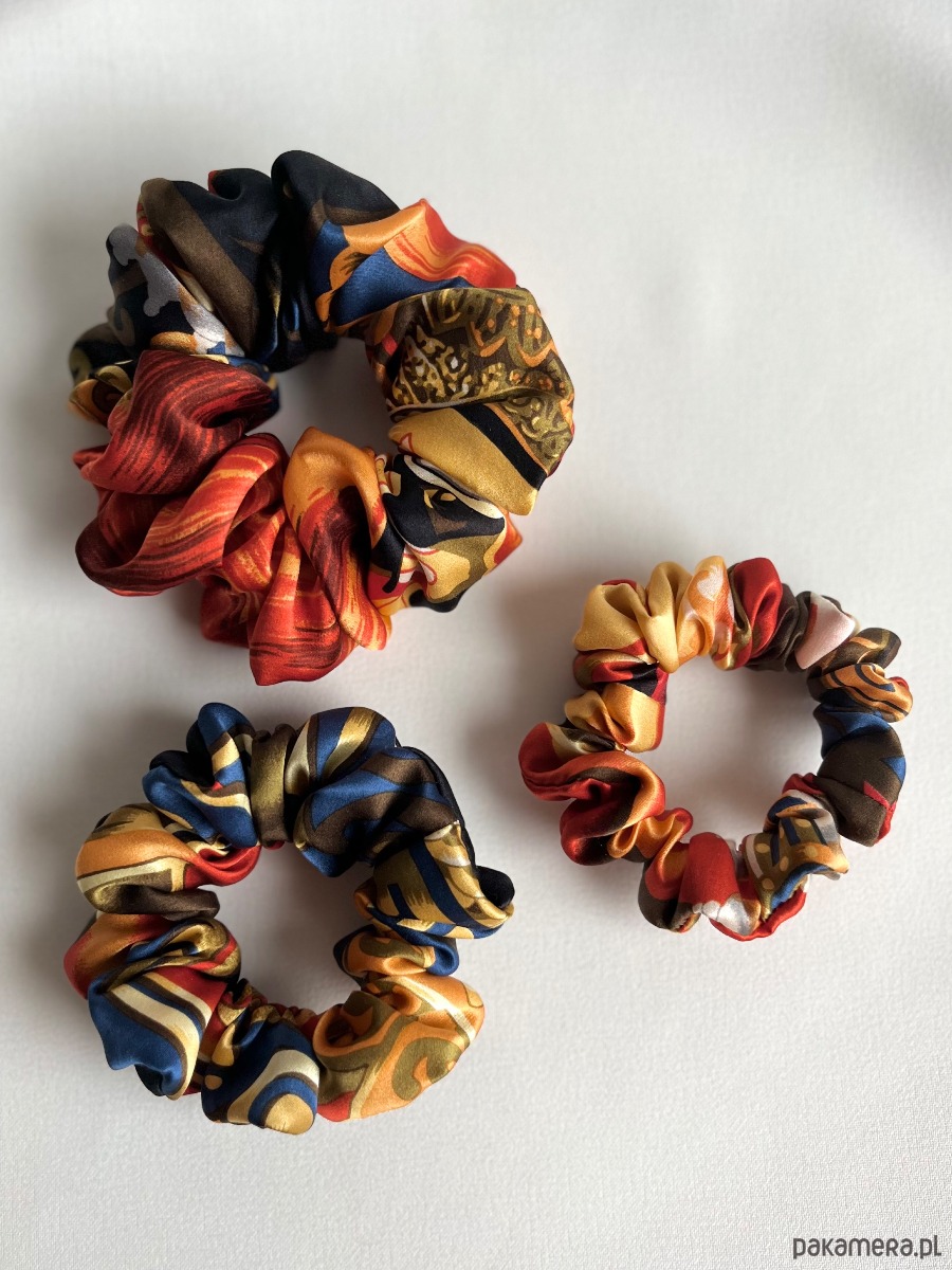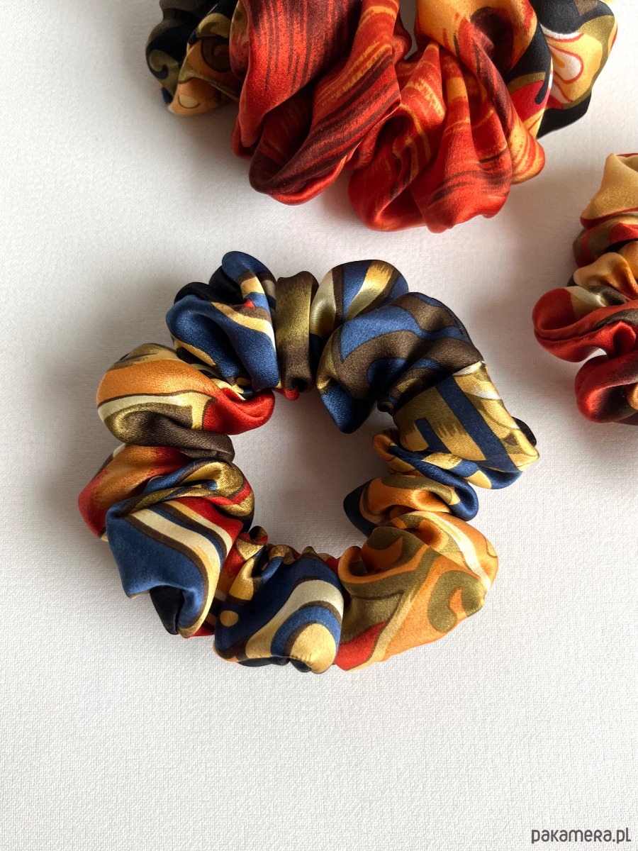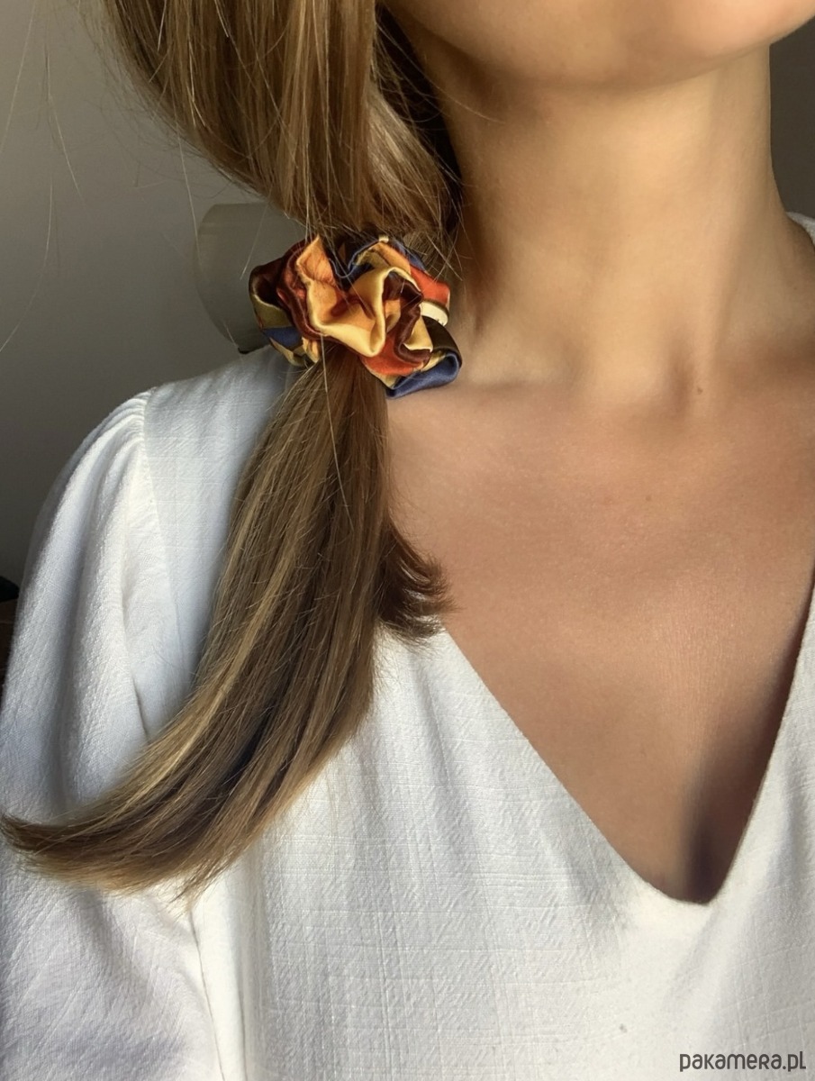 Jedwabna gumka scrunchie Marie doda charakteru każdej stylizacji – od codziennej po bardziej elegancką. Wyjątkowe połączenie kolorów z pewnością przyciągnie wiele spojrzeń.