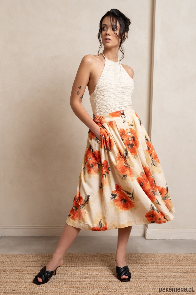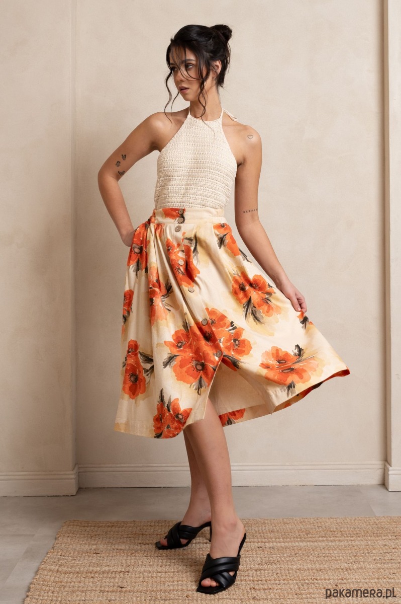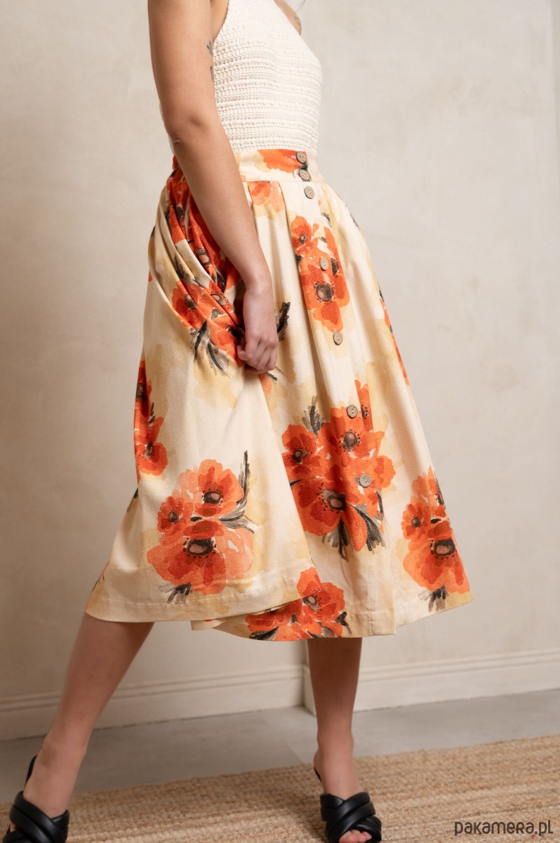 Jedwabna spódnica w kwiaty, VALENTINA (maki)