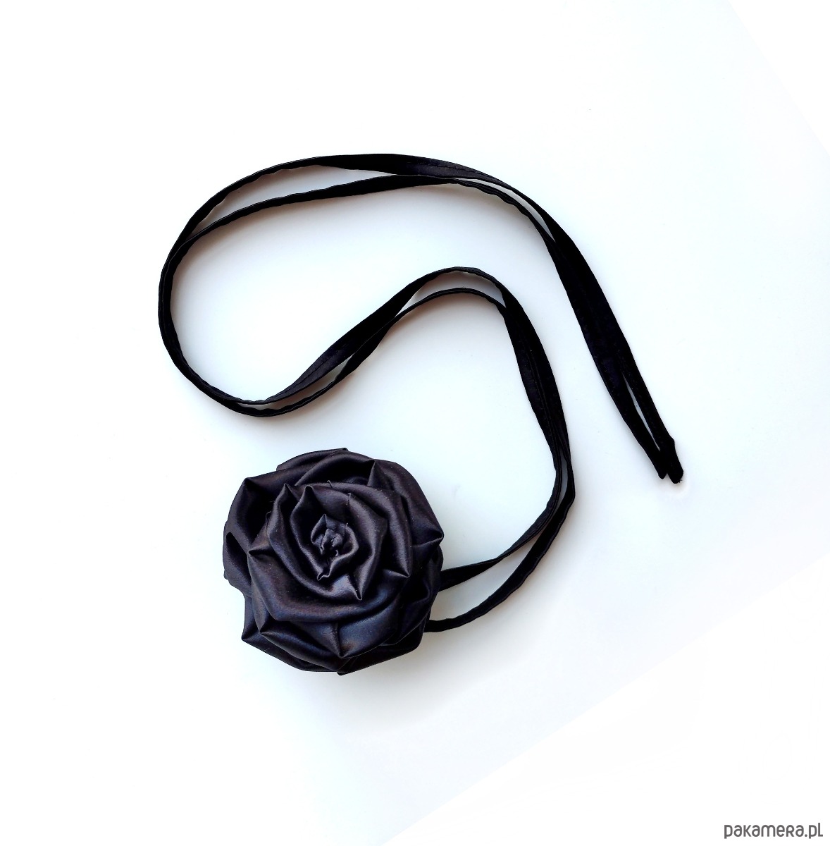 Piękny dodatek do stylizacji - jedwabny choker z różą . Zachwycająco wymodelowana, subtelna, lecz niebagatelna ozdoba, która podbije każdą stylizację. Choker w czarnym kolorze wkomponuje się w wiele stylizacji codziennych jak i tych na wielkie wyjście. Możesz go nosić zarówno na szyi jak i na nadgarstku, albo przyczepić go do ulubionej torebki, jako luksusowy dodatek, czy obwiązać wokół włosów.