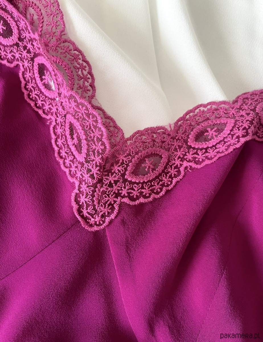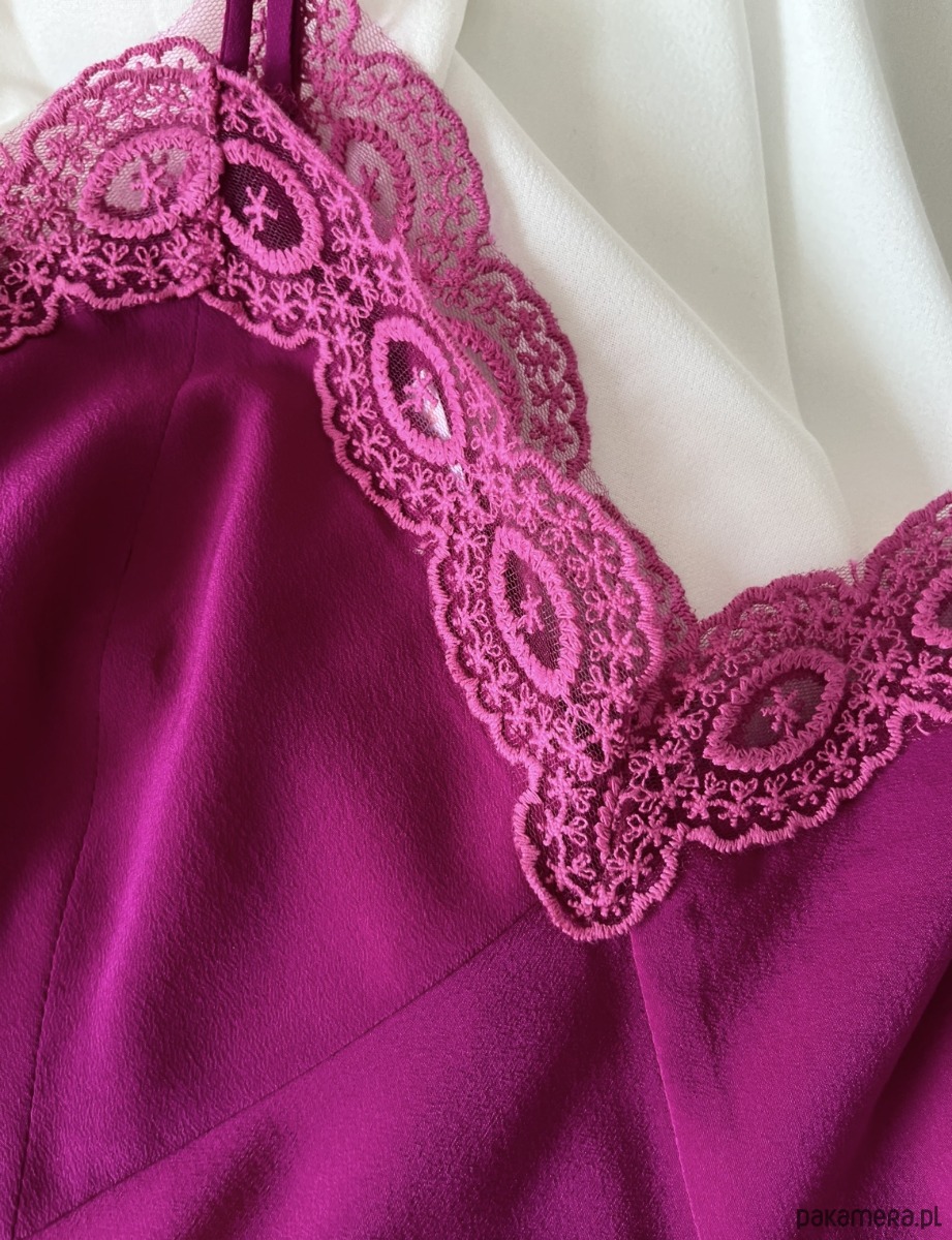 Jedwabny top z koronką i regulowanymi ramiączkami Fuksja Chic