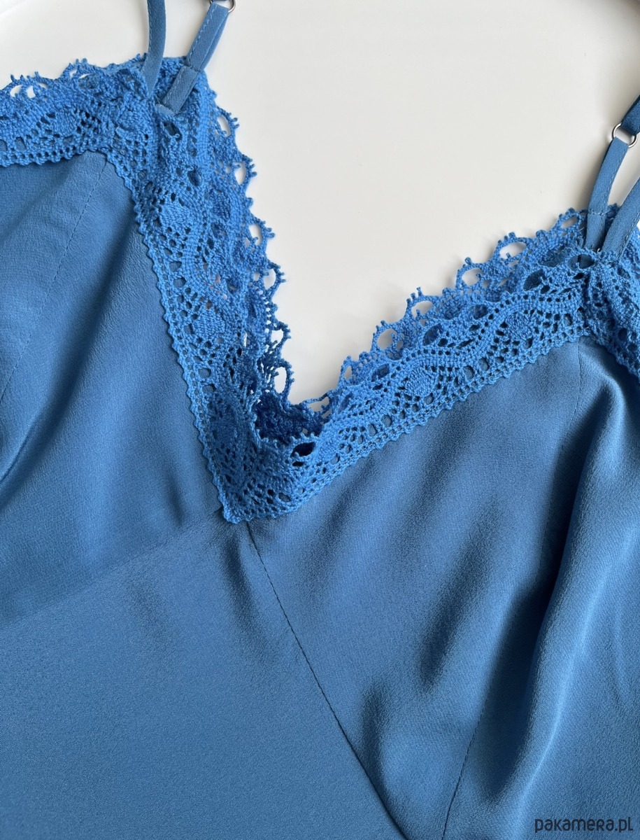 Jedwabny top z koronką i regulowanymi ramiączkami Blue