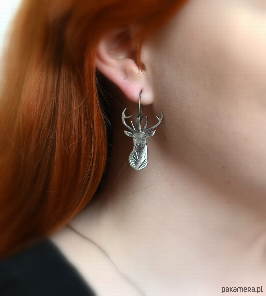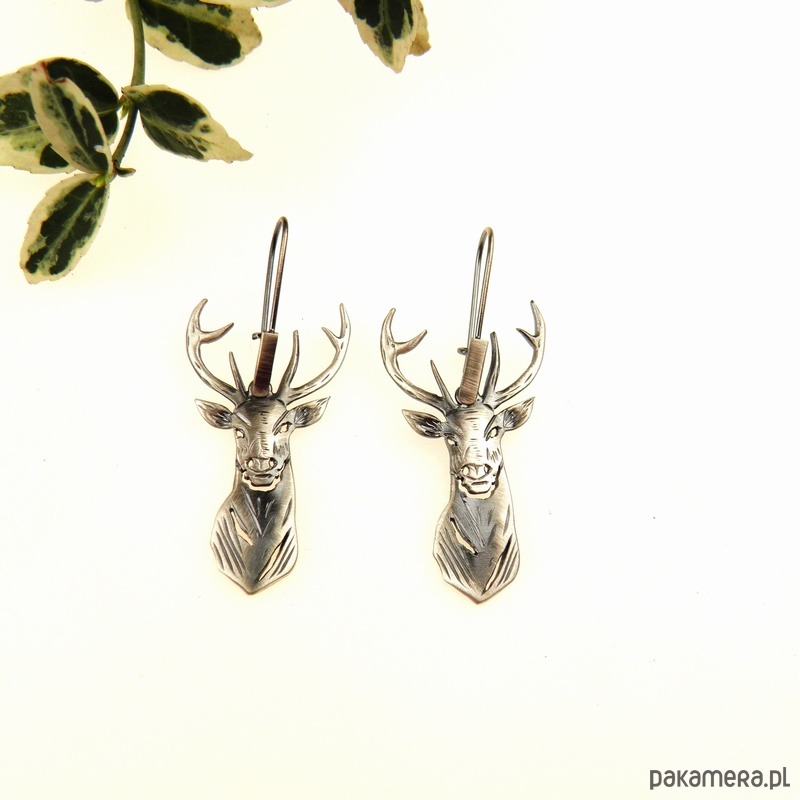 Oryginalne kolczyki z jeleniami, wykonane ze srebra próby 925.