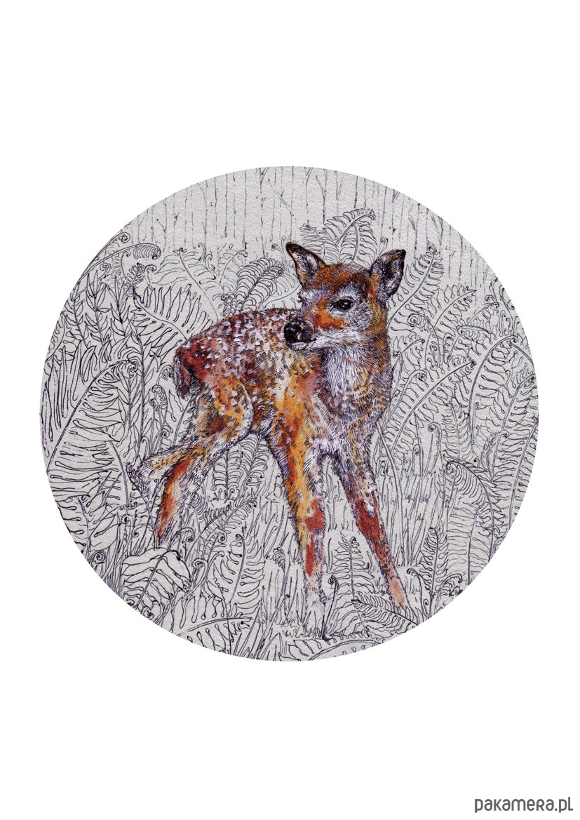Jelonek, to wydruk autorskiej ilustracji inspirowanej światem leśnej fauny