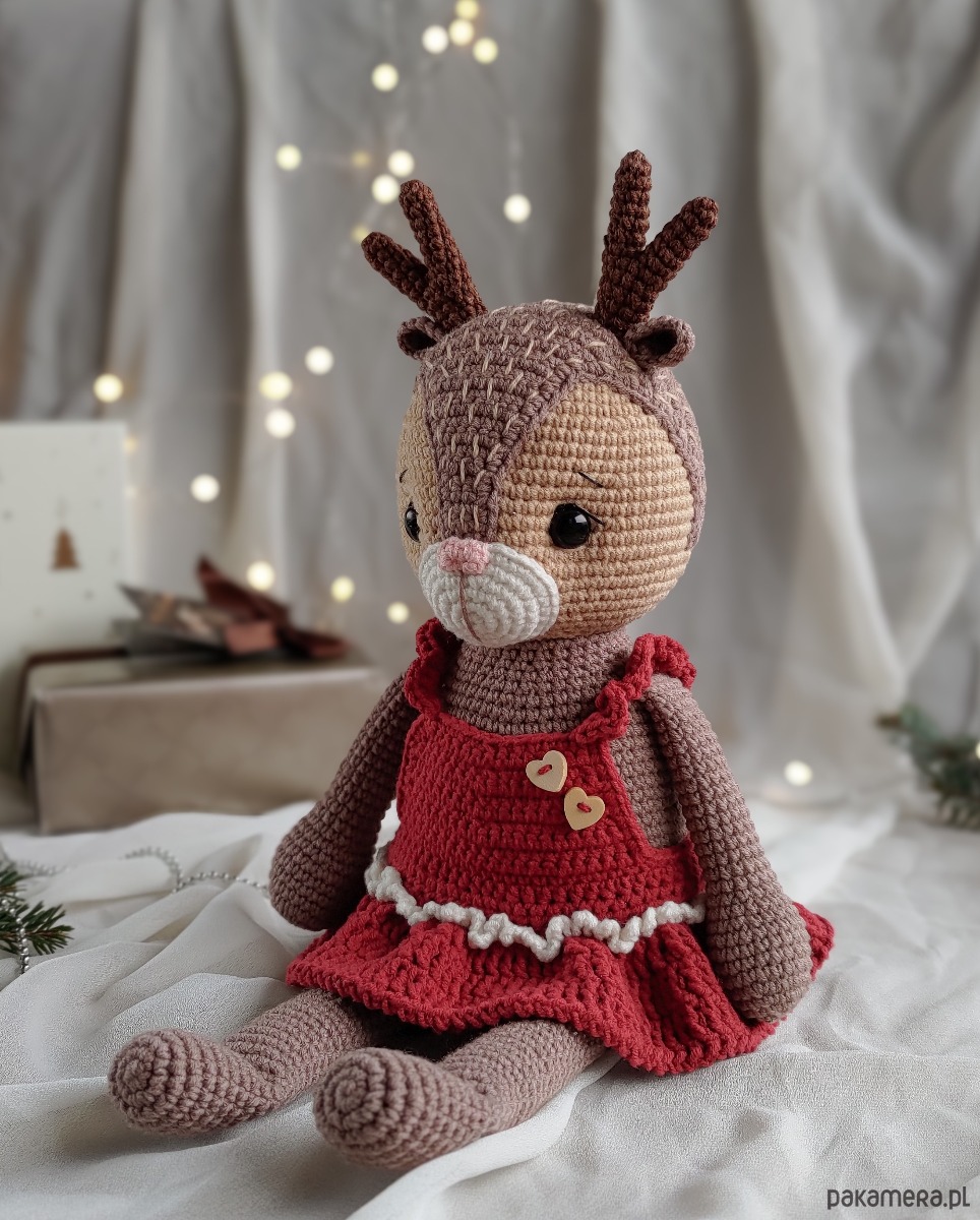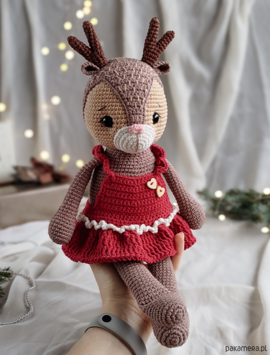 Miękka zabawka jeleń w sukience będzie uroczym prezentem dla dziewczynek na wiele różnych okazji. Może również służyć jako dekoracja do pokoju dziecięcego.