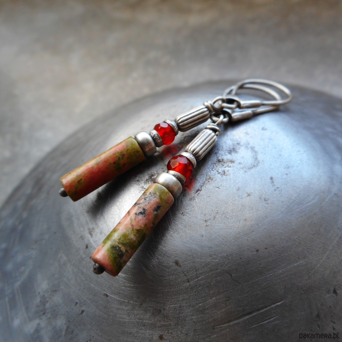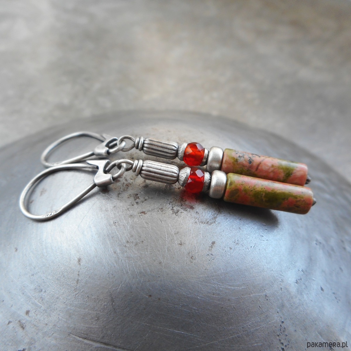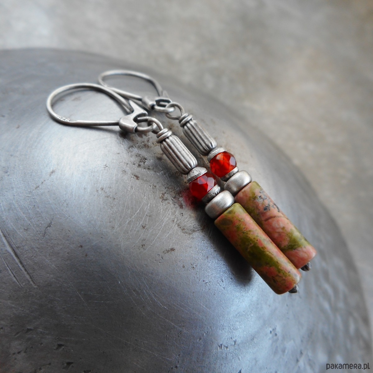 Wyjątkowe kolczyki z kamieni naturalnych i szlachetnego srebra; klasyczne wiszące, nie obciążające ucha.