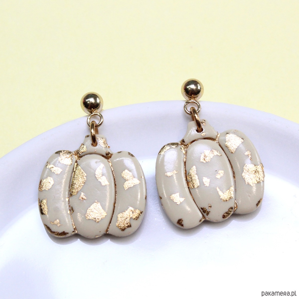Kolczyki beżowe dynie wykonane z wysokiej jakości glinki polimerowej Fimo.