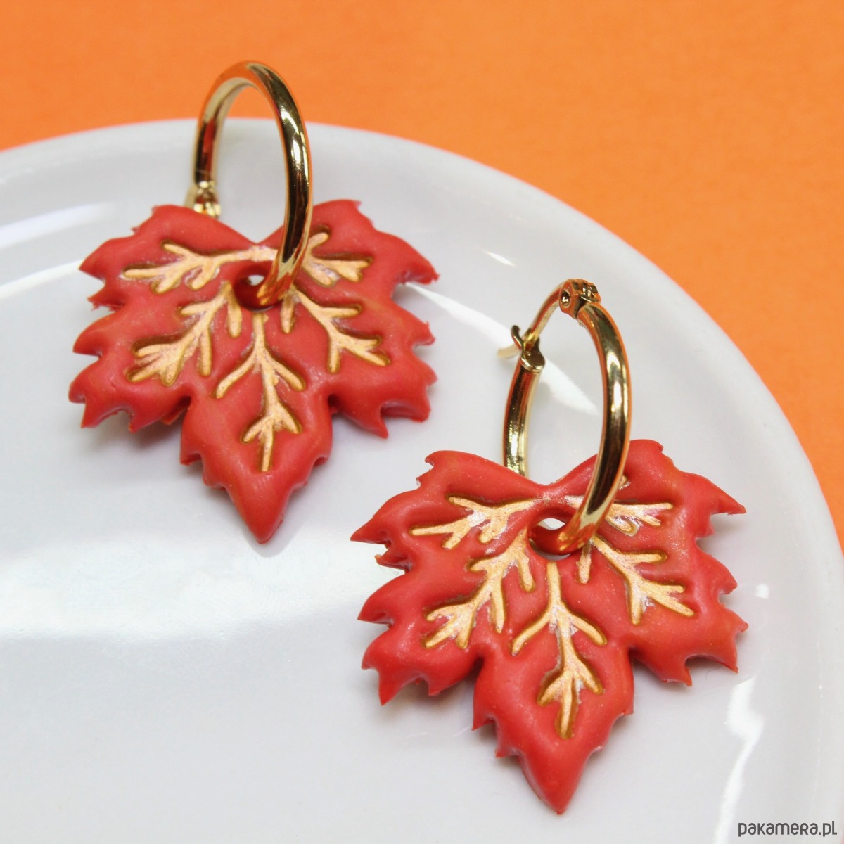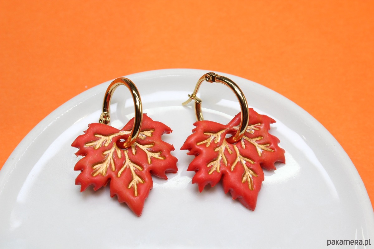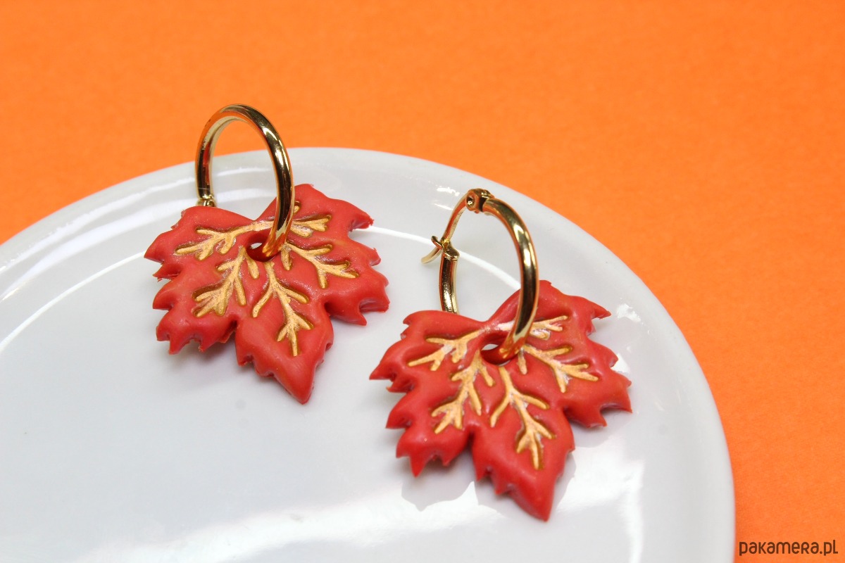 Kolczyki listki wykonane z wysokiej jakości glinki polimerowej.