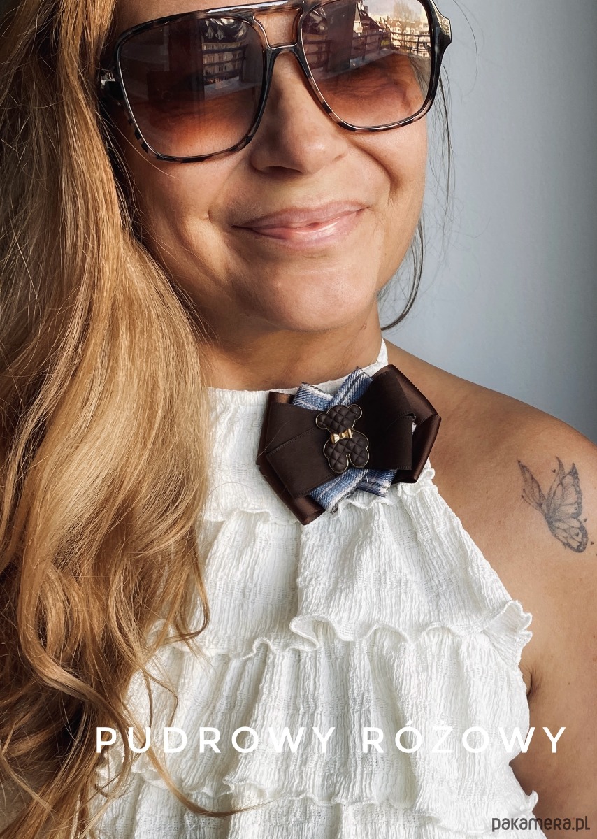 Broszka wykonana z wysokiej jakości taśm i dodatków.