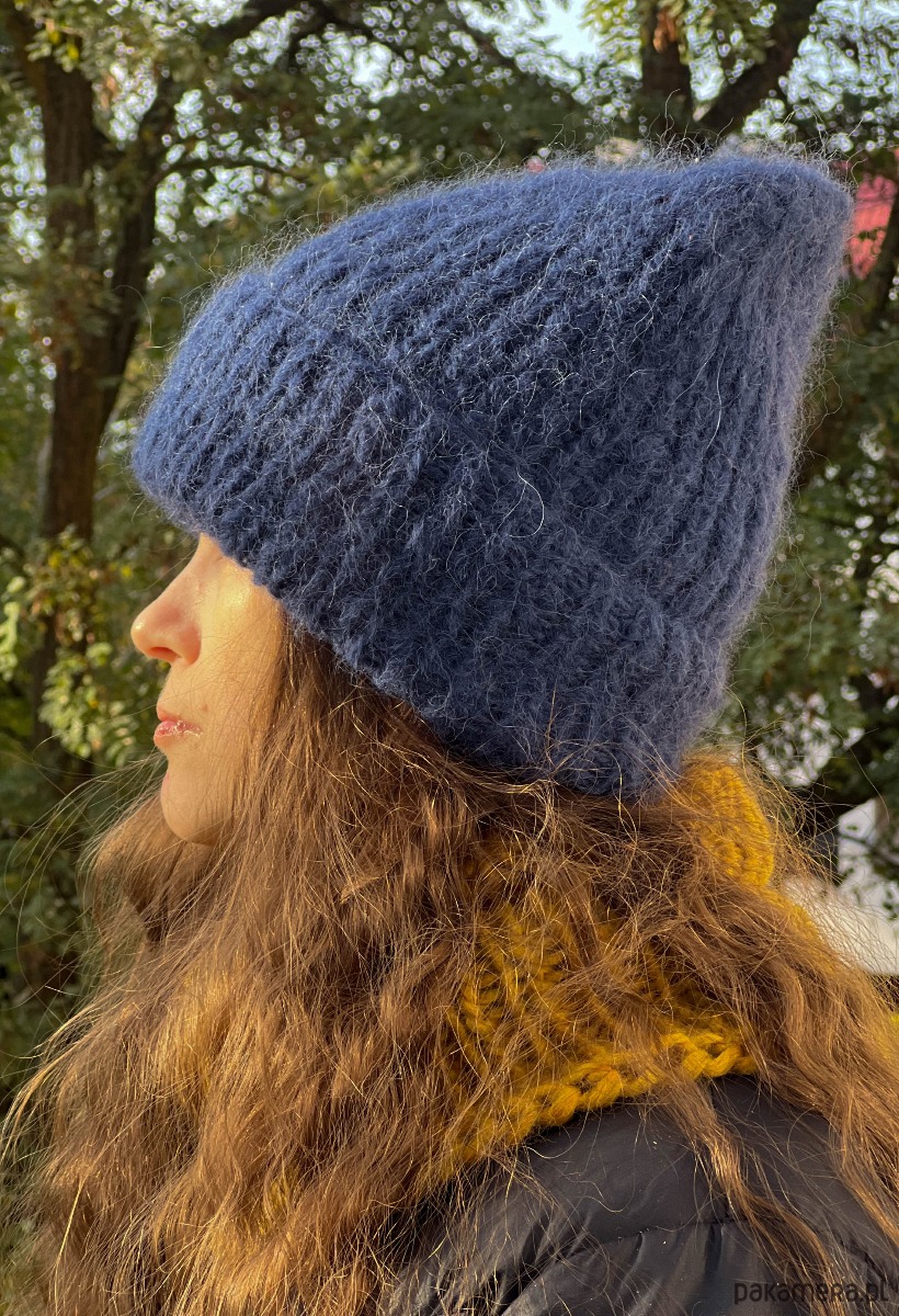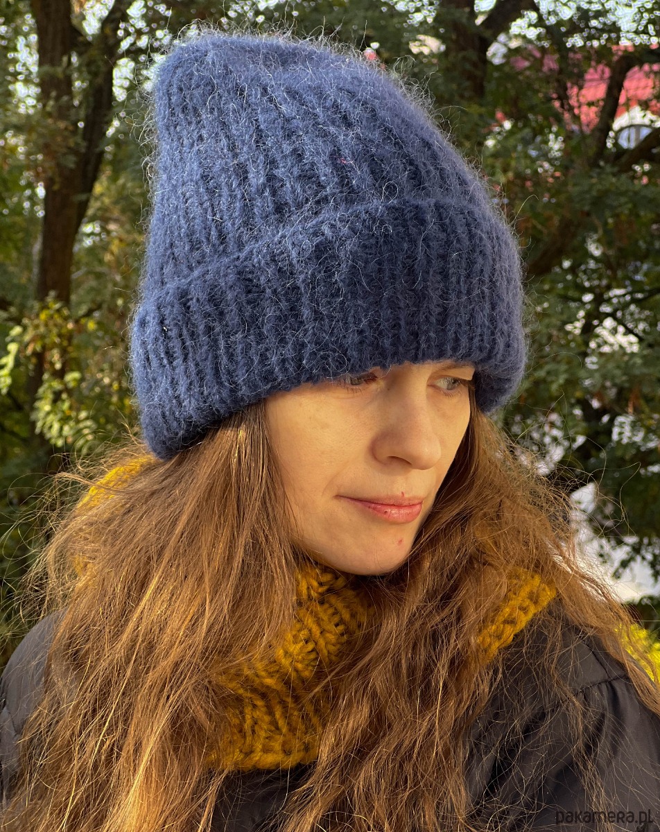 Jesienna czapka Dimma z alpaki i merynosa niebieska