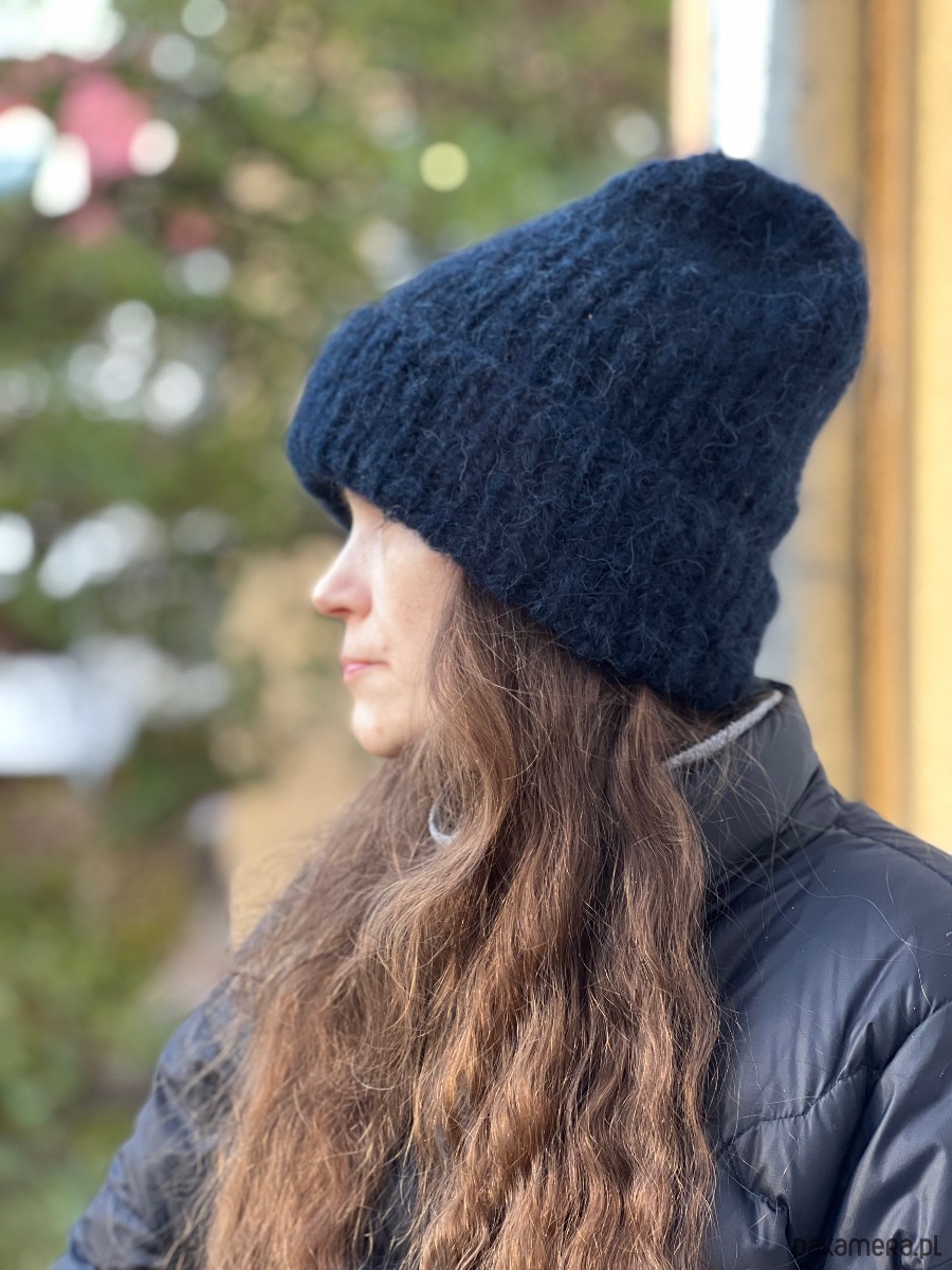 Jesienna czapka Dimma z alpaki i merynosa nocny granat