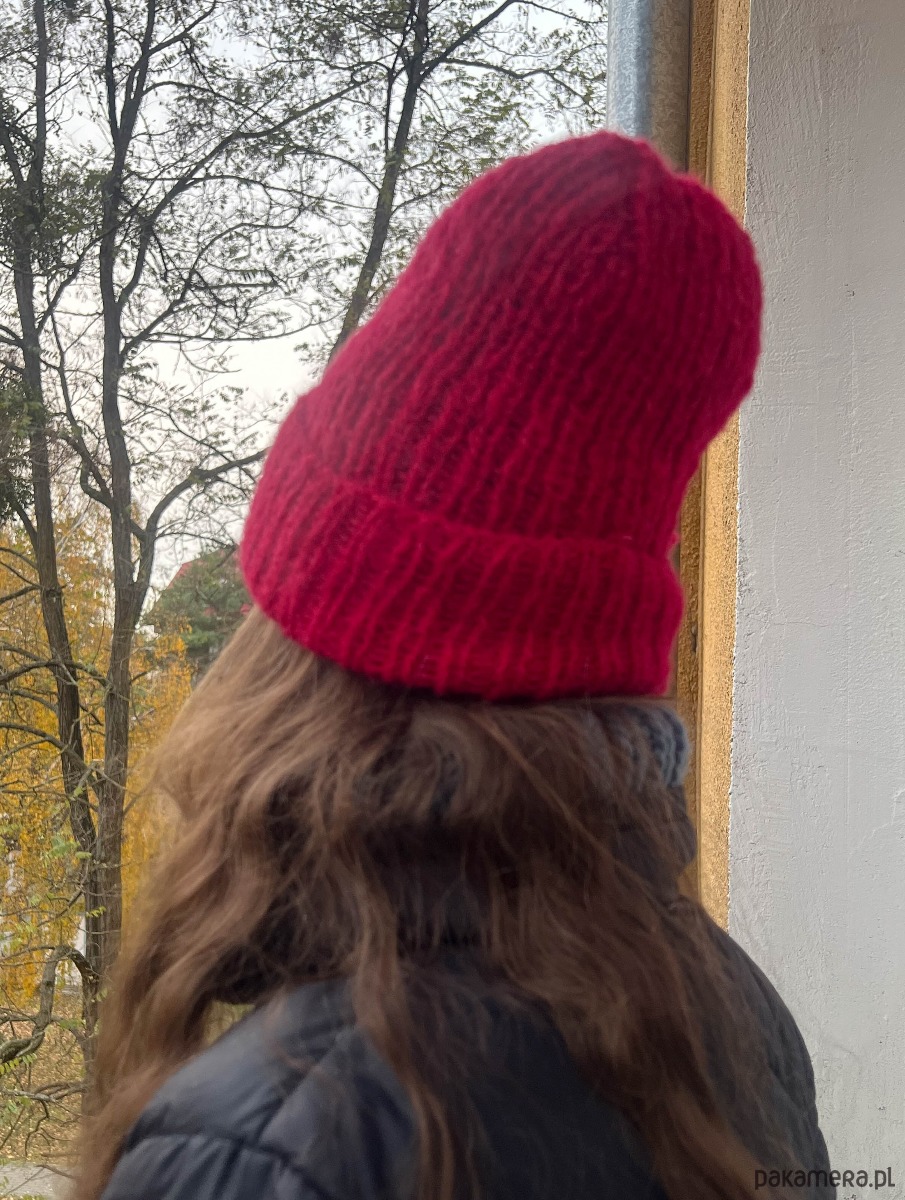 Czapka jest oversize, jest rozciągliwa, można ją dowolnie wywijać. Jest miękka i puchata.