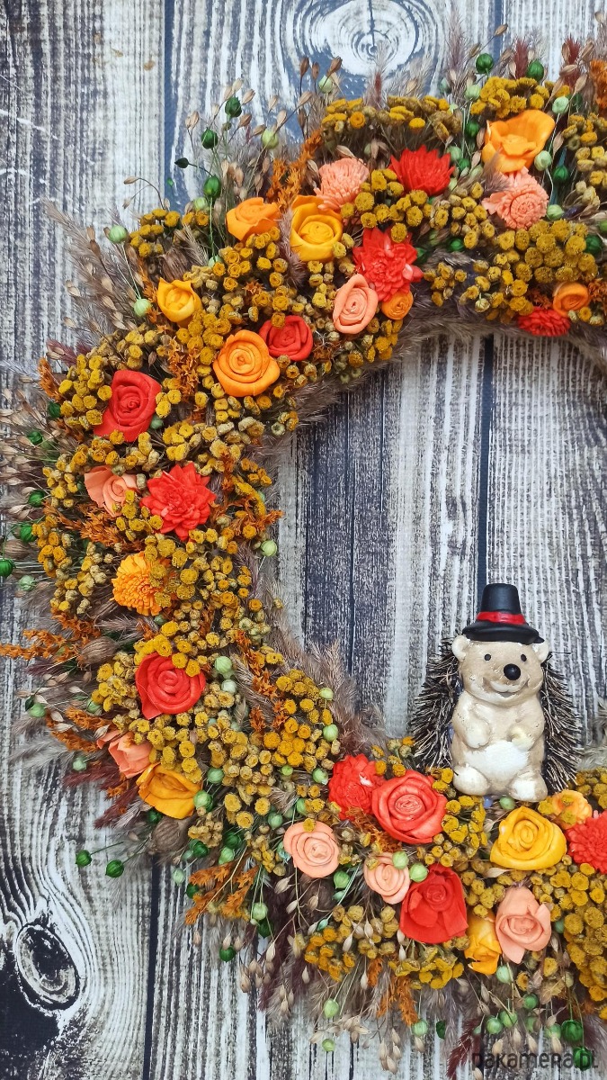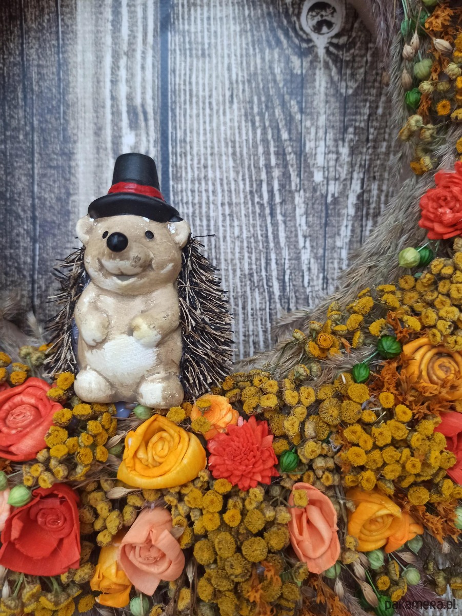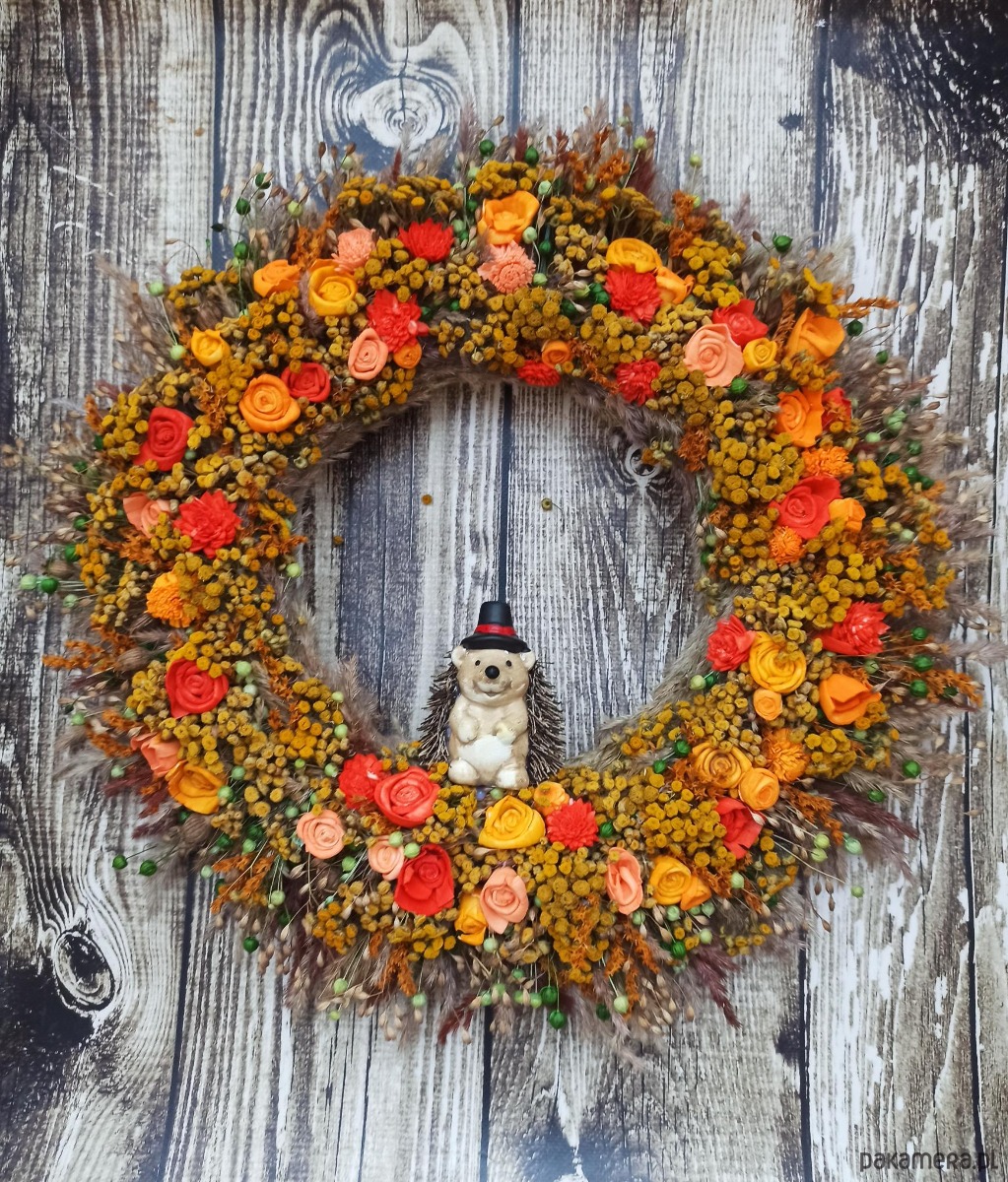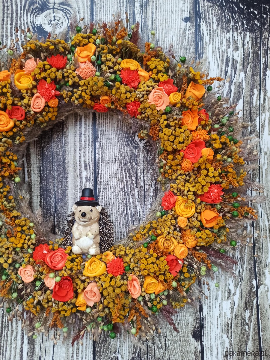 Jesienna dekoracja drzwi, wianek jesienny z jeżem, #J6, rozmiar 45 cm