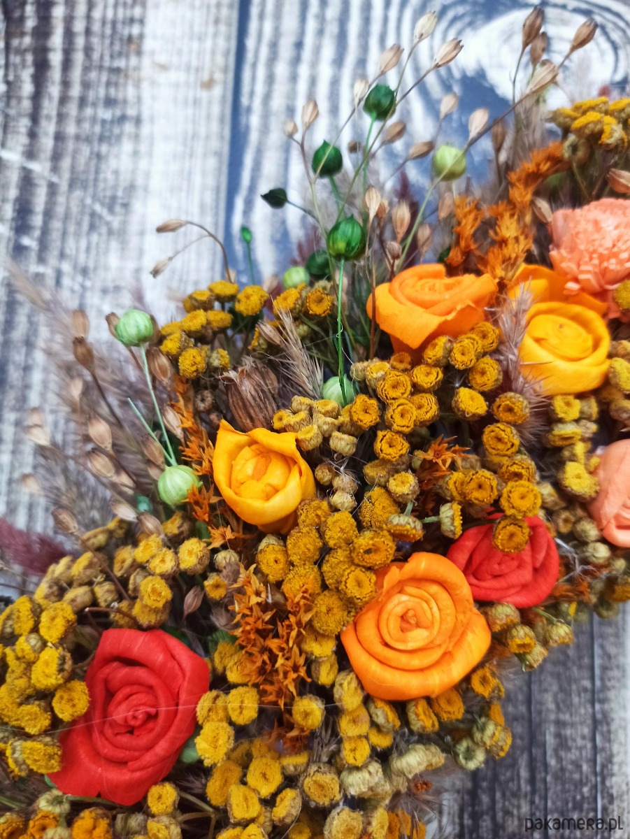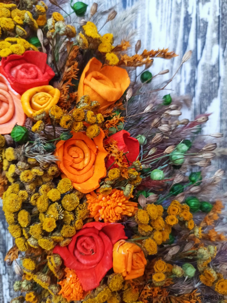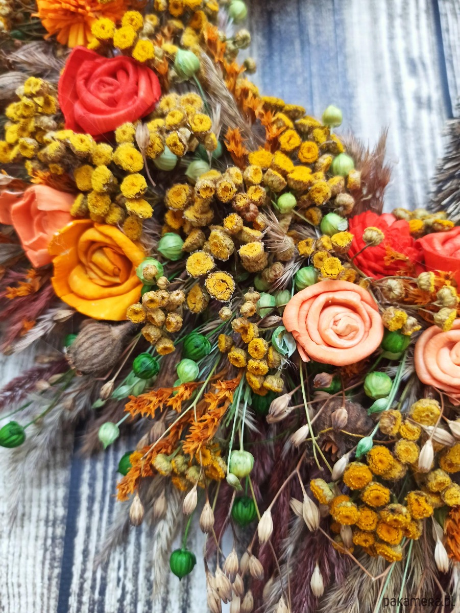 Unikatowy wianek wykonany z suszu, jest wyjątkową i ekologiczną dekoracją drzwi wejściowych, symbolem powitania gości oraz zapowiedzią radosnej, uroczystej lub świątecznej atmosfery.
