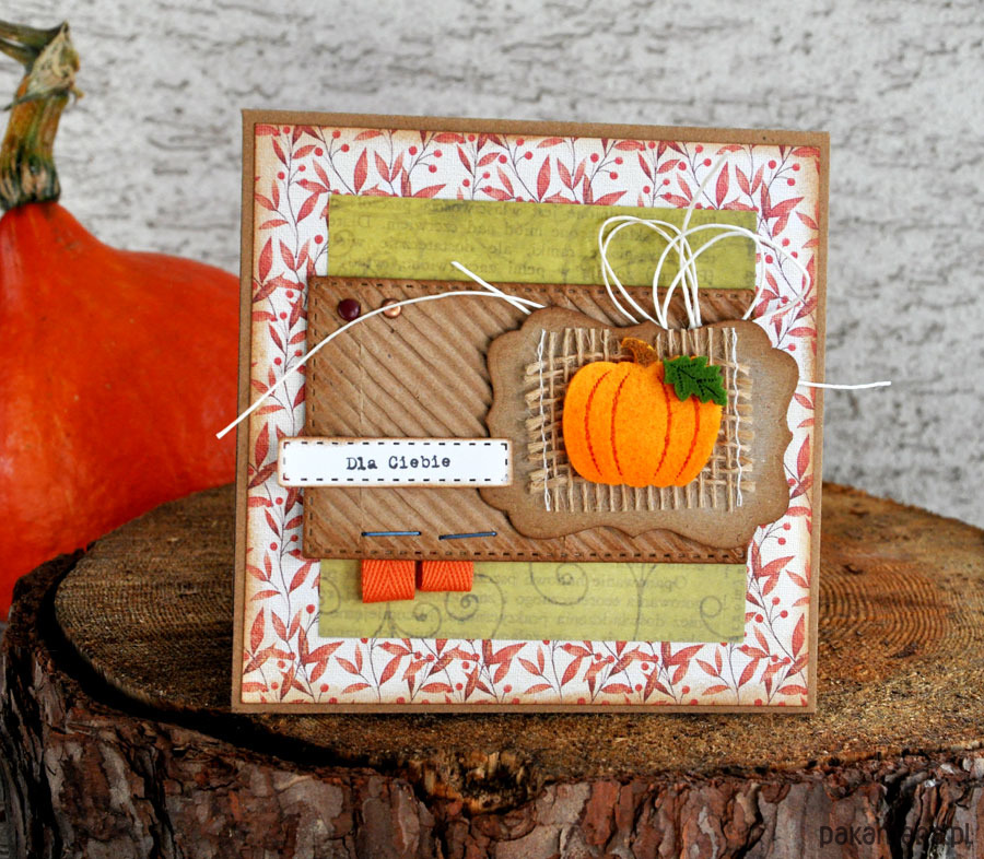Piękna, wyjątkowa kartka okolicznościowa w jesiennym anturażu; wykonana techniką scrapbookingu, z elementami 3D; wielkość kartki 13x13cm; w komplecie koperta; zapraszam