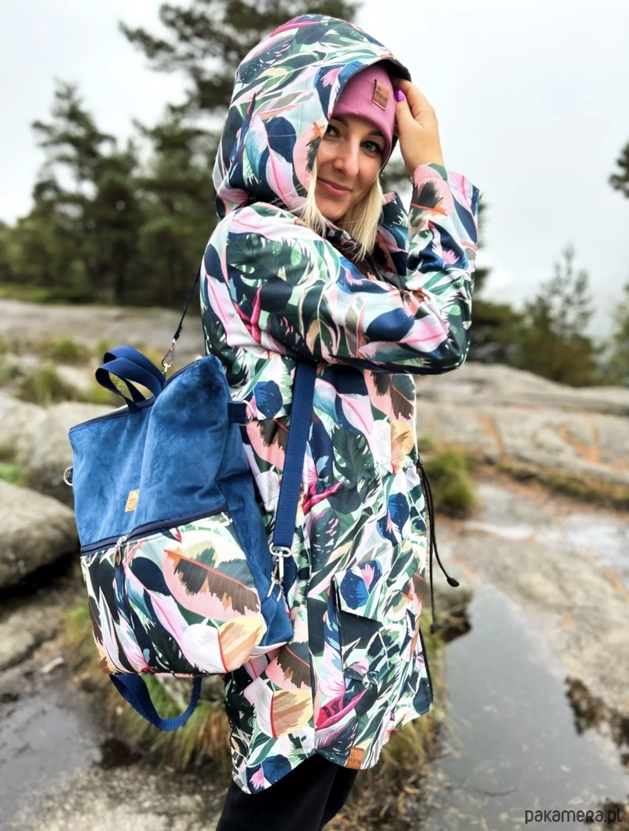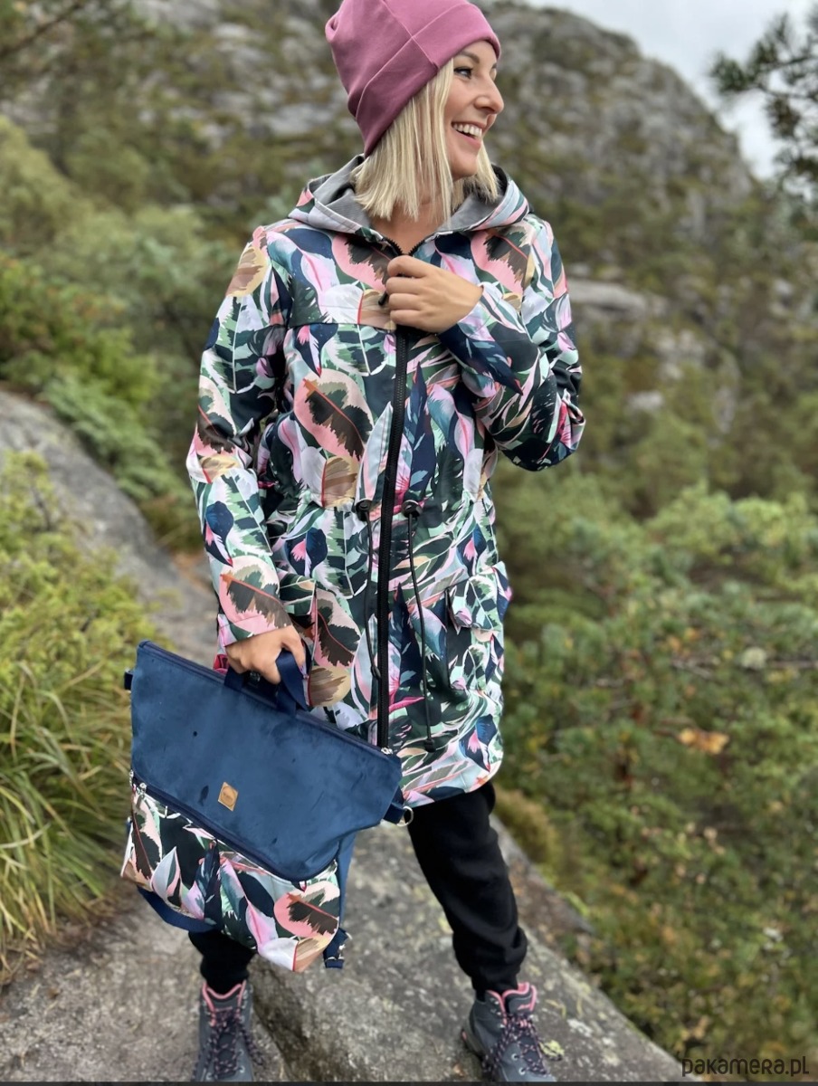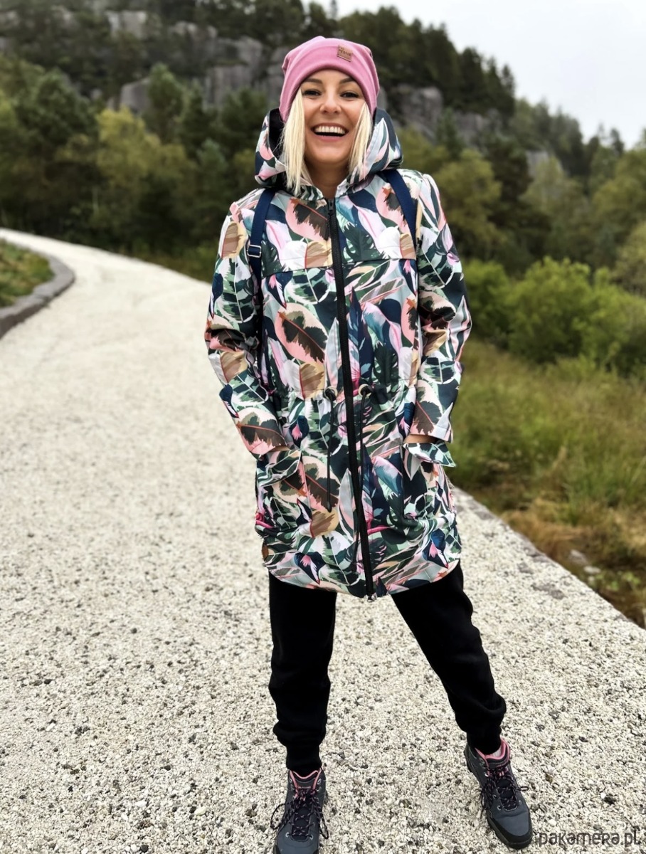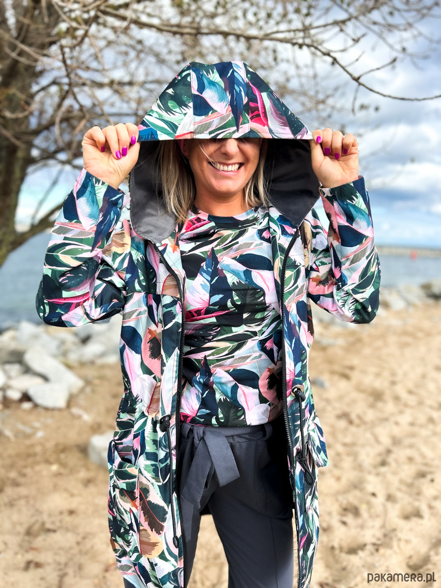 Kurtka damska typu parka wzór kwiaty doniczkowe, lekko ocieplana. Wyróżnij się z szarości jesiennej! Czas na wzorzystą kurtkę!