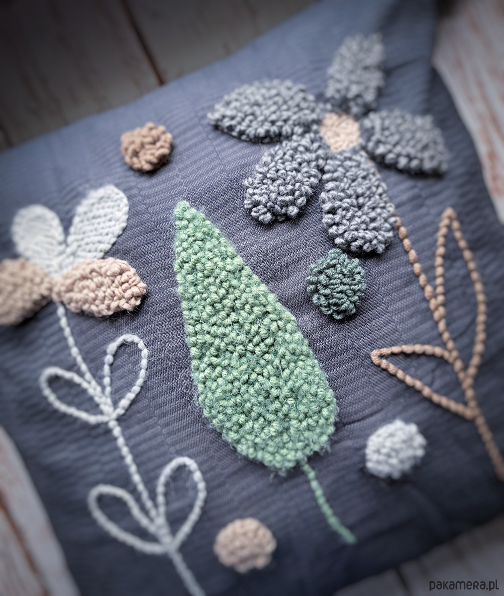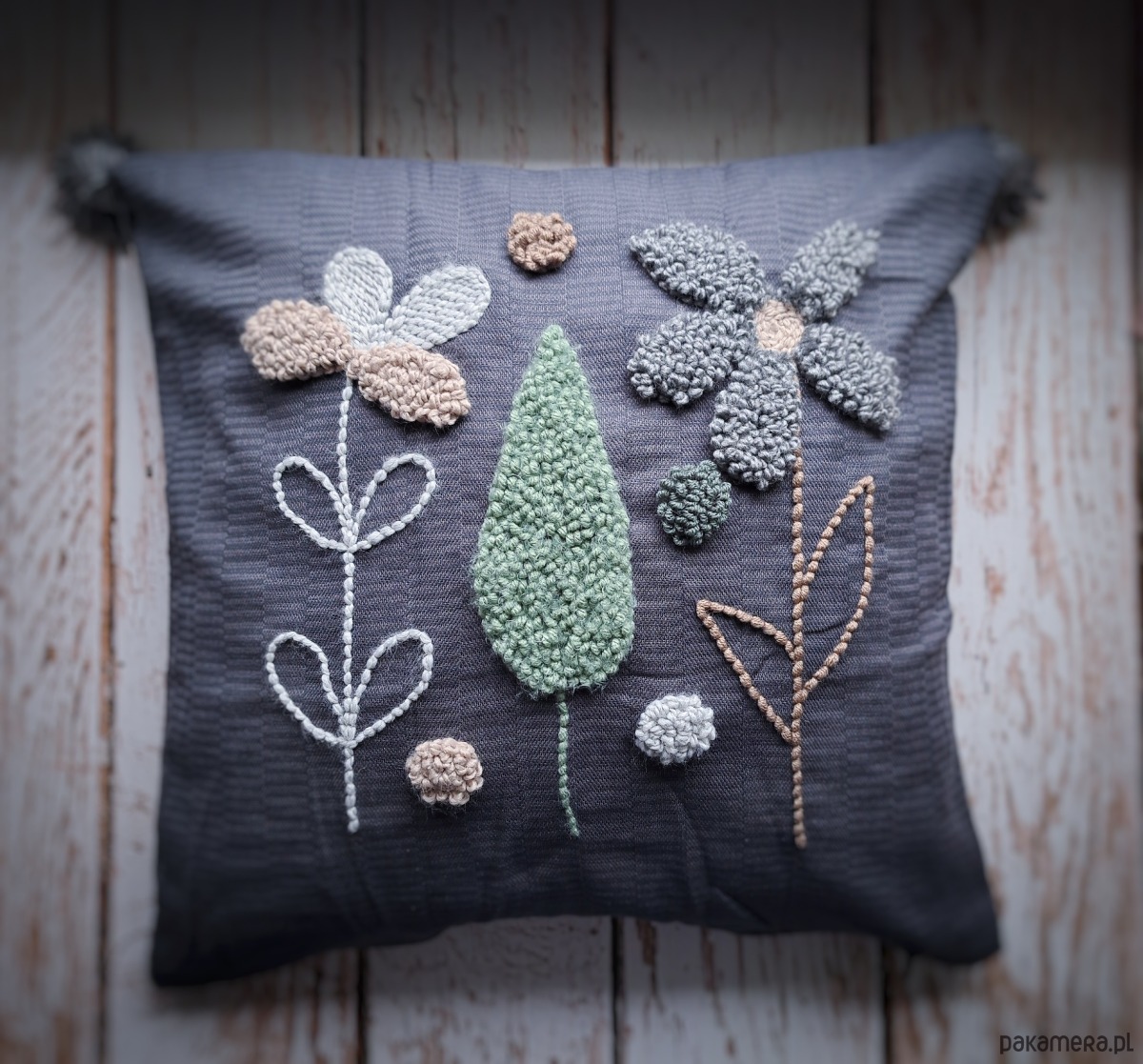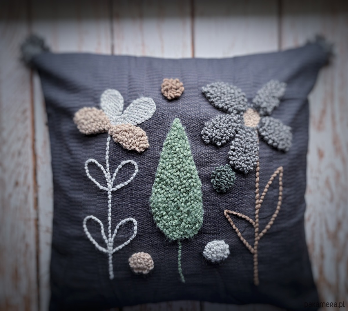 Ręcznie wykonana poduszka w technice punch needle, w ciepłych, jesiennych barwach 🍄🍄🍄