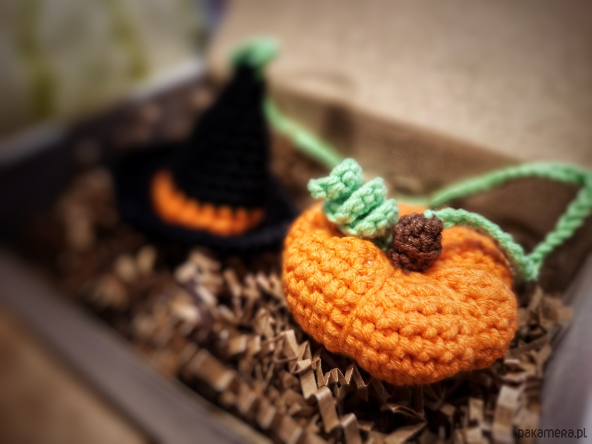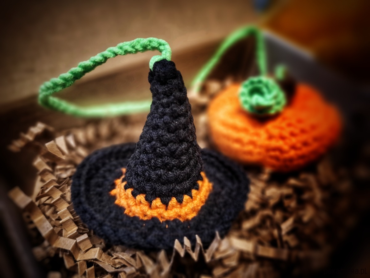Szydełkowa zawieszka Halloween – dynia i kapelusz czarownicy
