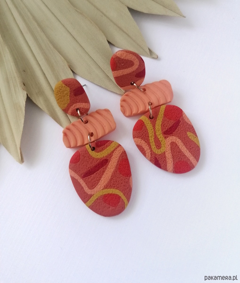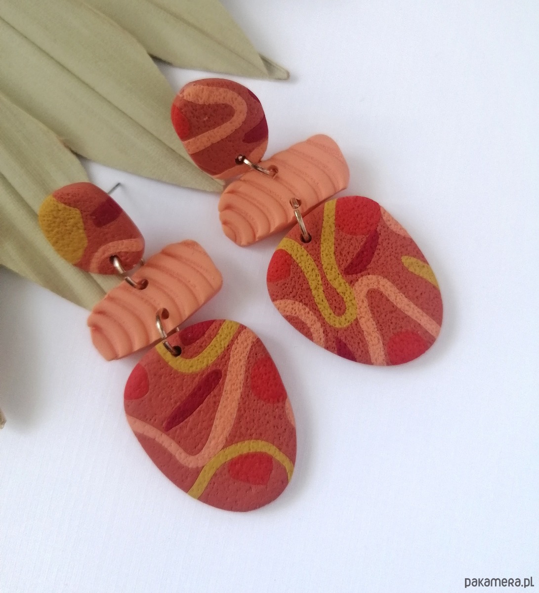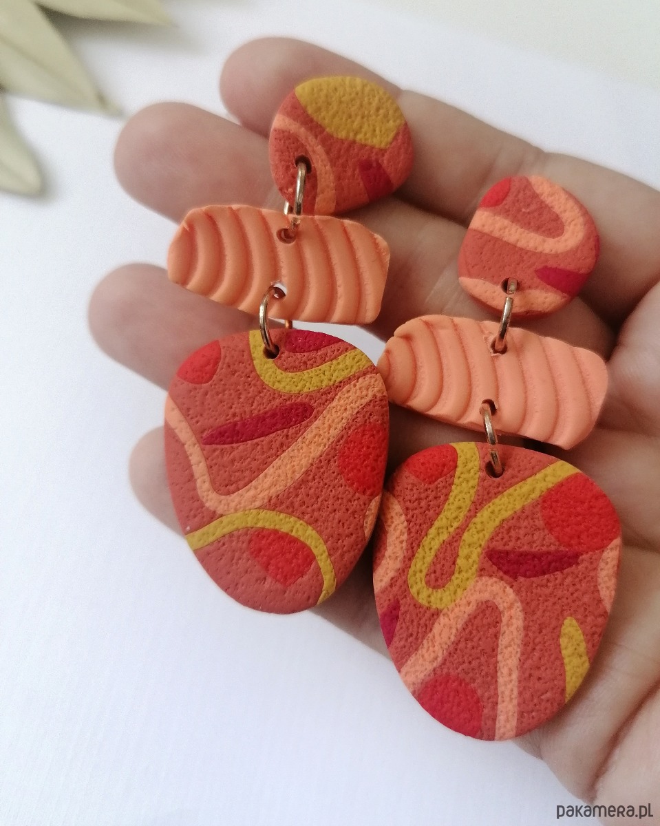 Kolczyki wykonane własnoręczne z gliny polimerowej. Idealne dla osób lubiących i ceniących oryginalne dodatki. Są bardzo lekkie. Sztyfty ze stali chirurgicznej, dołączam silikonowe antyalergiczne baranki.