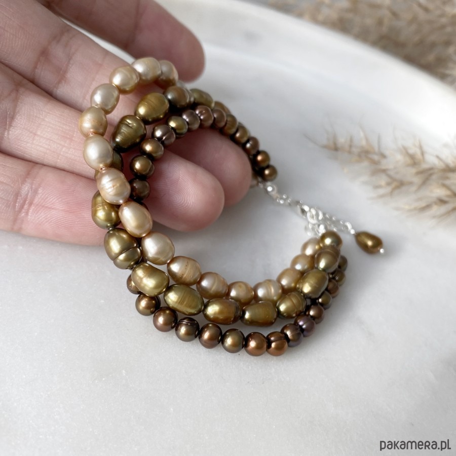 Kolor pereł : odcienie złota, brązu, oliwki i beżu.