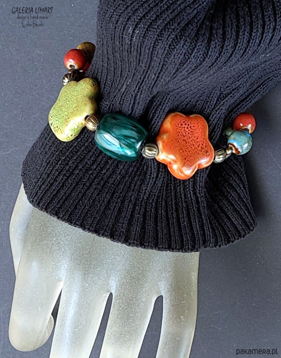 Jesiennie i unikatowo Bransoleta w kolorach jesieni z uroczej ceramiki