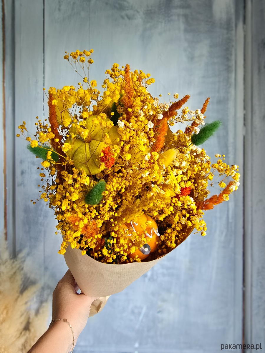 Jesienny bukiet z dyniami, Gisówka z suszonymi kwiatami