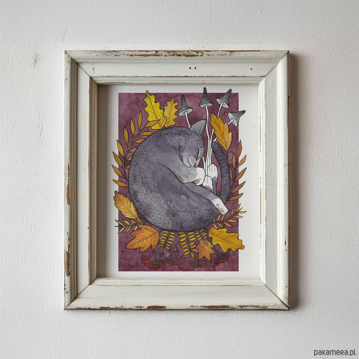 ✴ Print z szarym kotem wśród jesiennych liści, w rozmiarze od A5 do A4