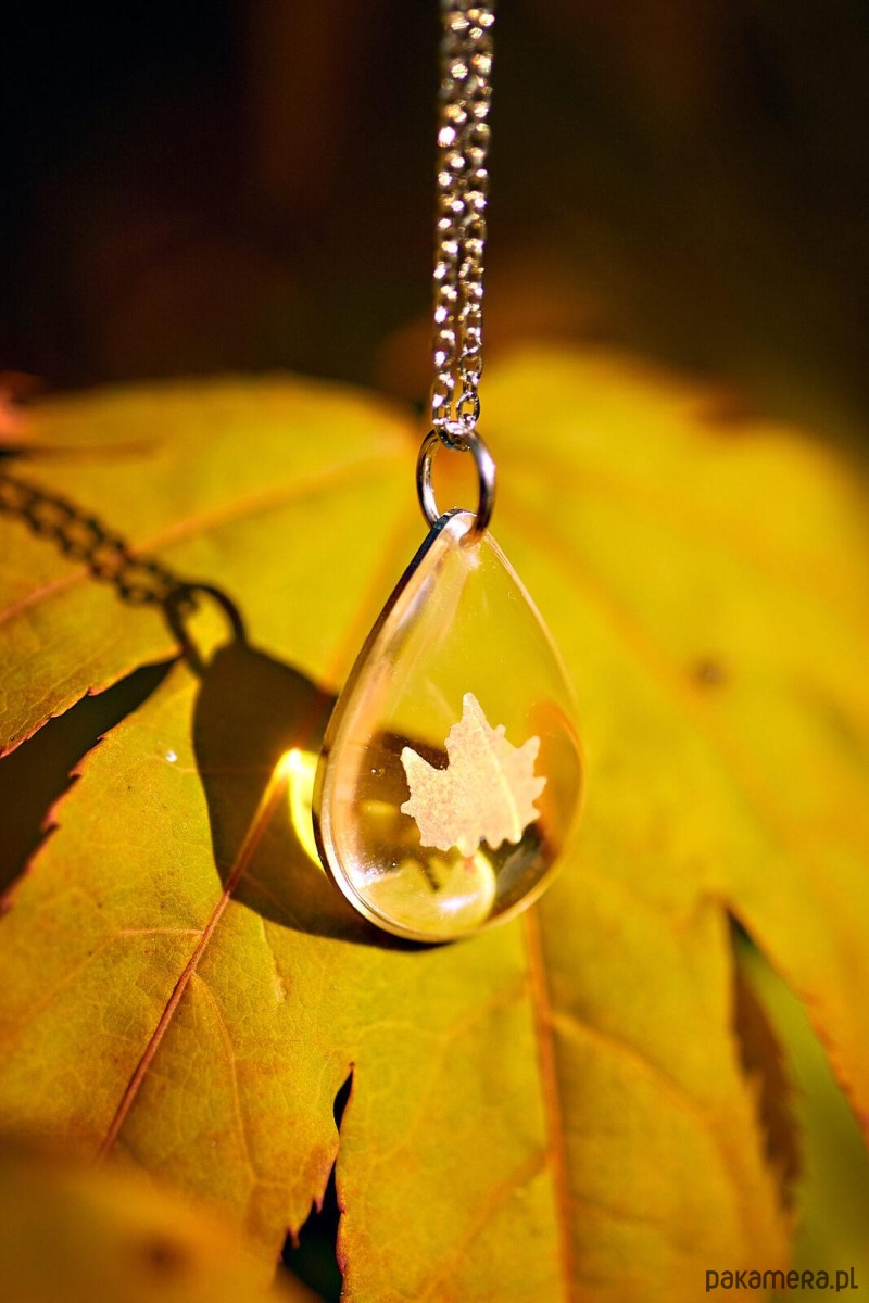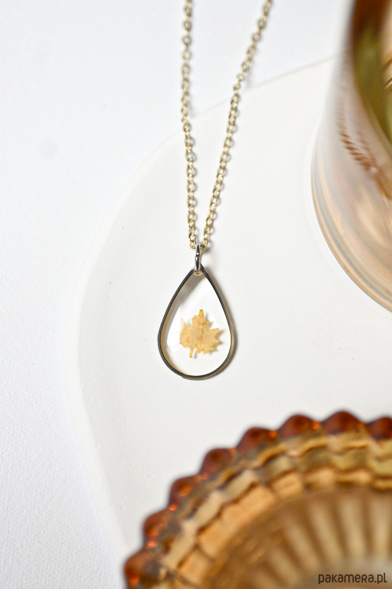 Jesienny naszyjnik łezka, naszyjnik z liściem klonu