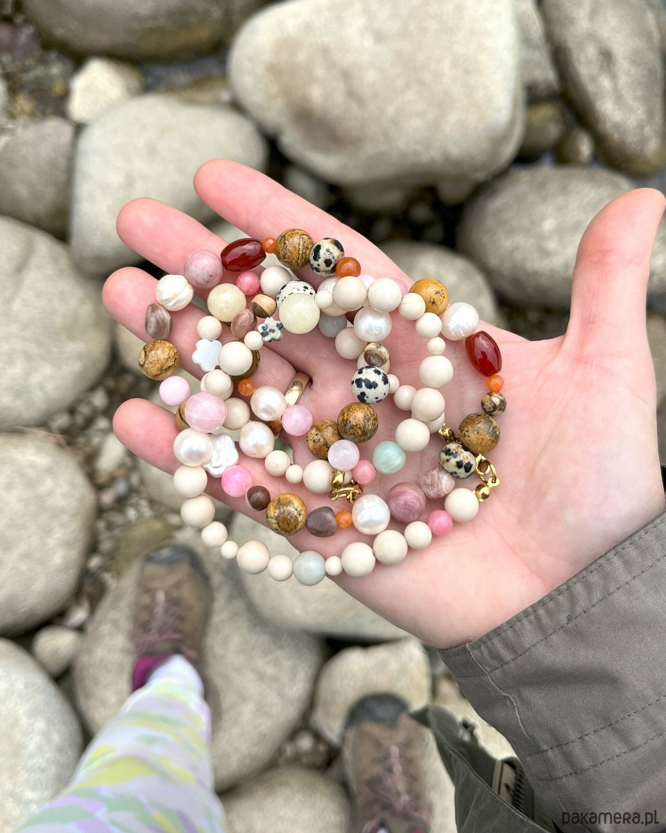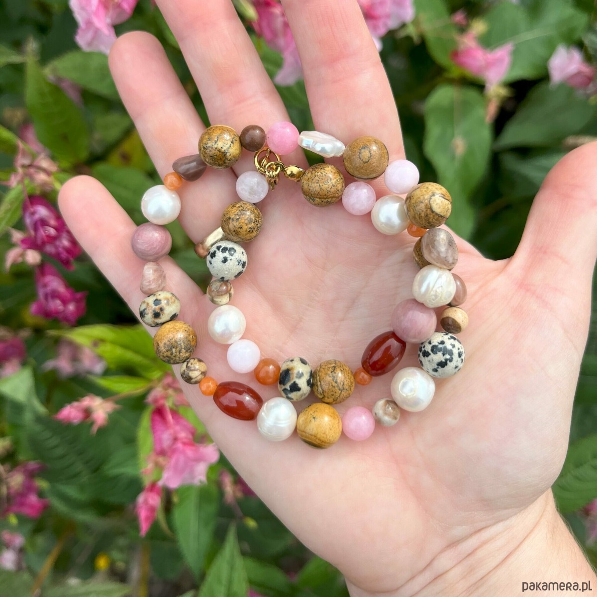 Skład: jaspisy, opal, perła słodkowodna, jadeit, rodonit, kamień słoneczny, agat