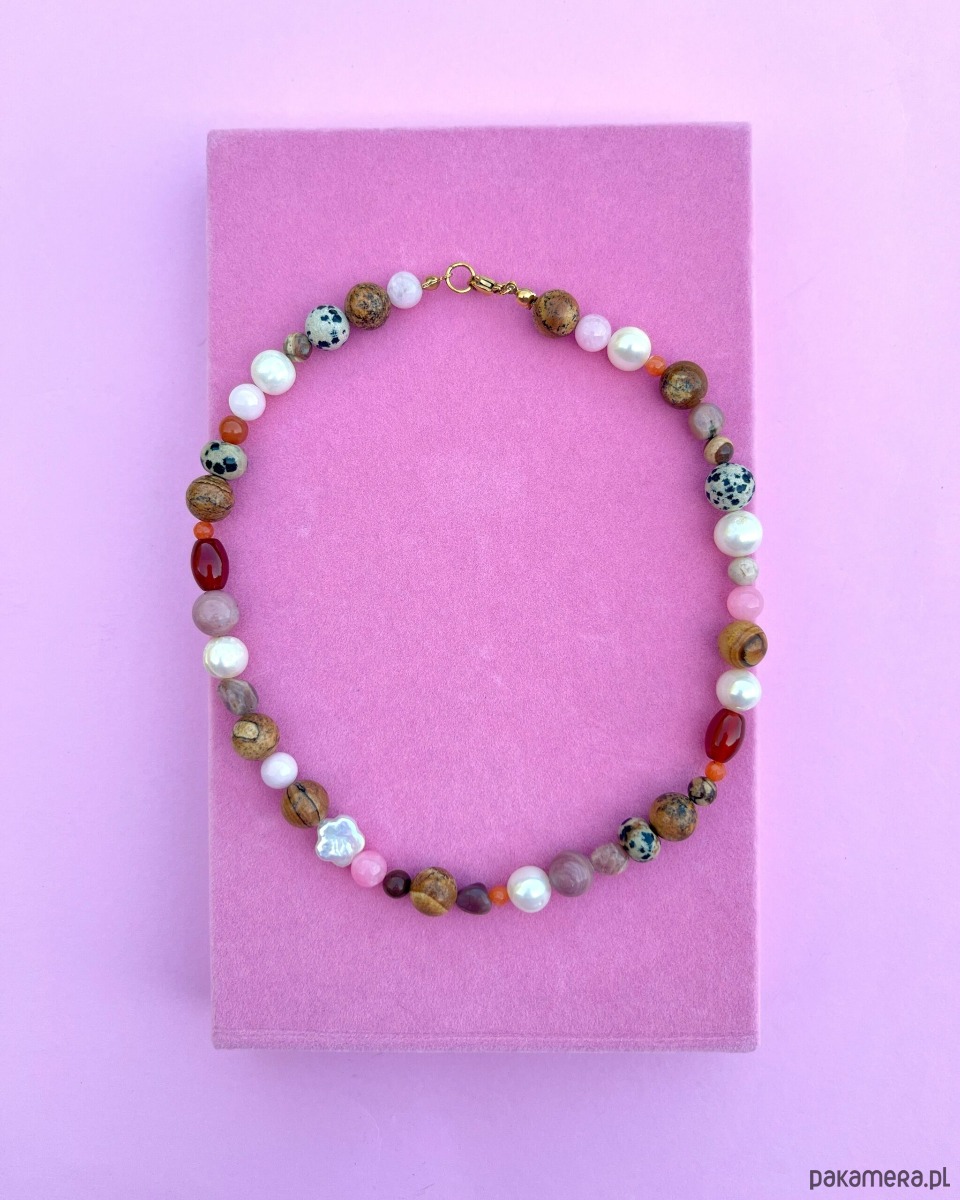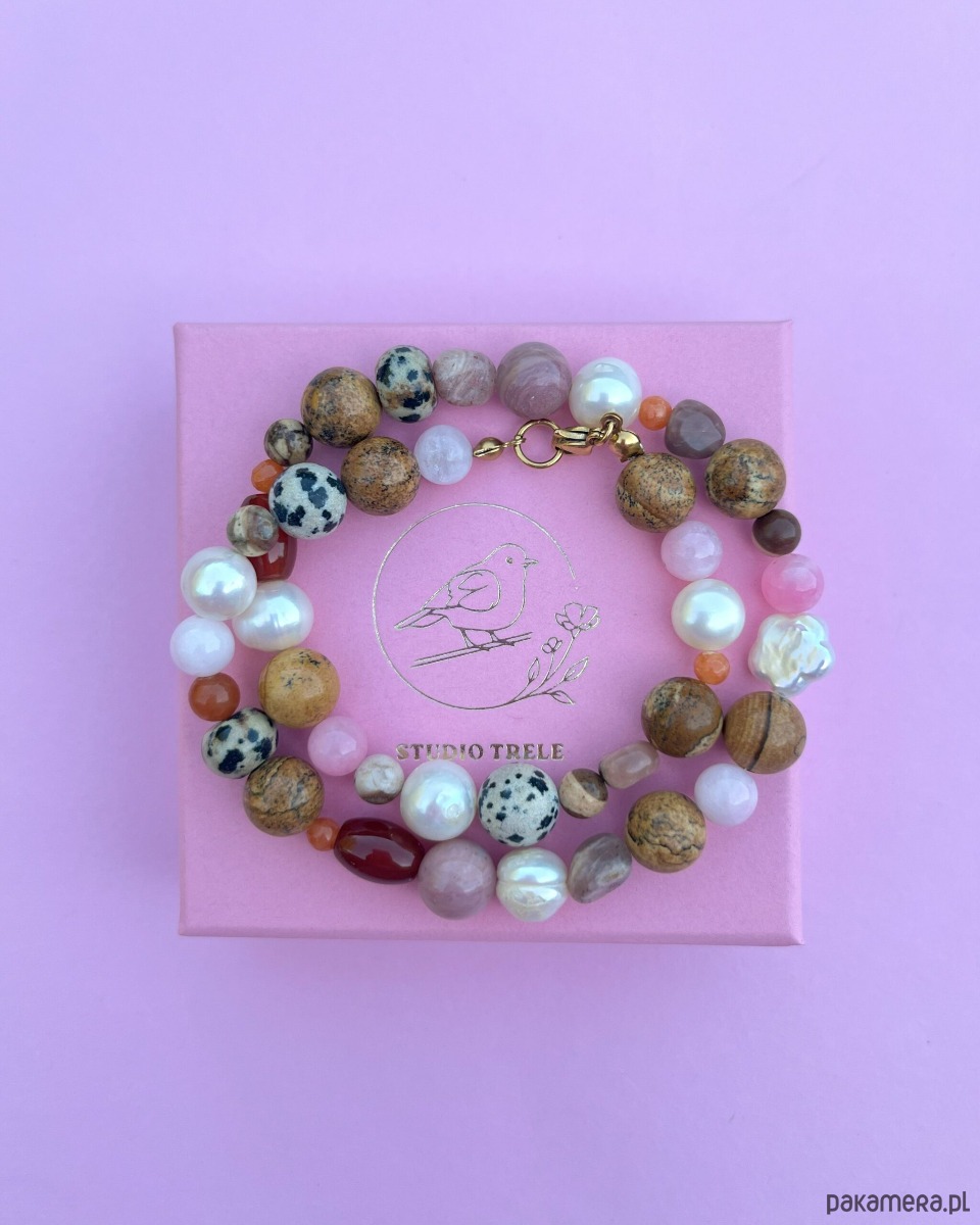 Naszyjnik Studia Trele – przepełniony kamieniami naturalnymi, kolorami, kształtami i niepowtarzalnym vibem! Jedyny w swoim rodzaju, doda Twojej stylizacji charakteru i przyciągnie spojrzenie każdego, kto ceni jakość.