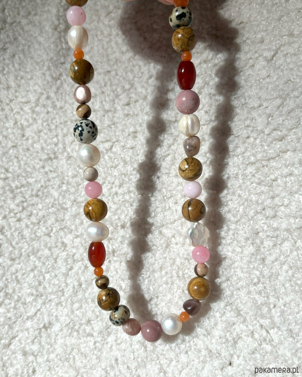 Naszyjnik z pięknych kamieni w tonacji jesiennej