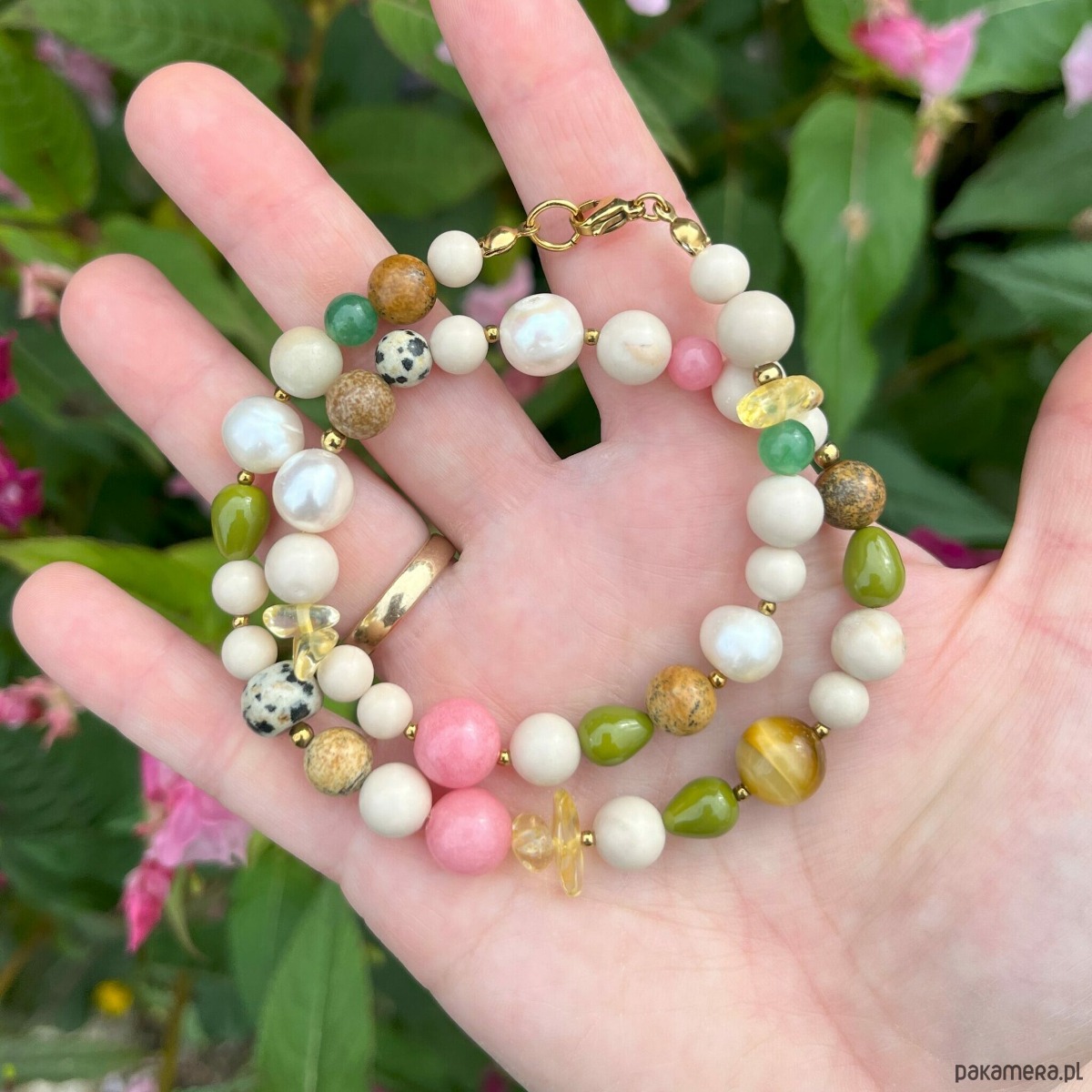 Skład: kamień rzeczny, cytryn, jadeit, amazonit, jaspis dalmatyński, tygrysie oko, szkło, hematyt