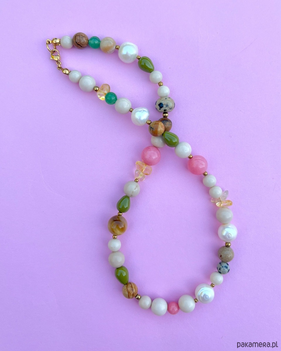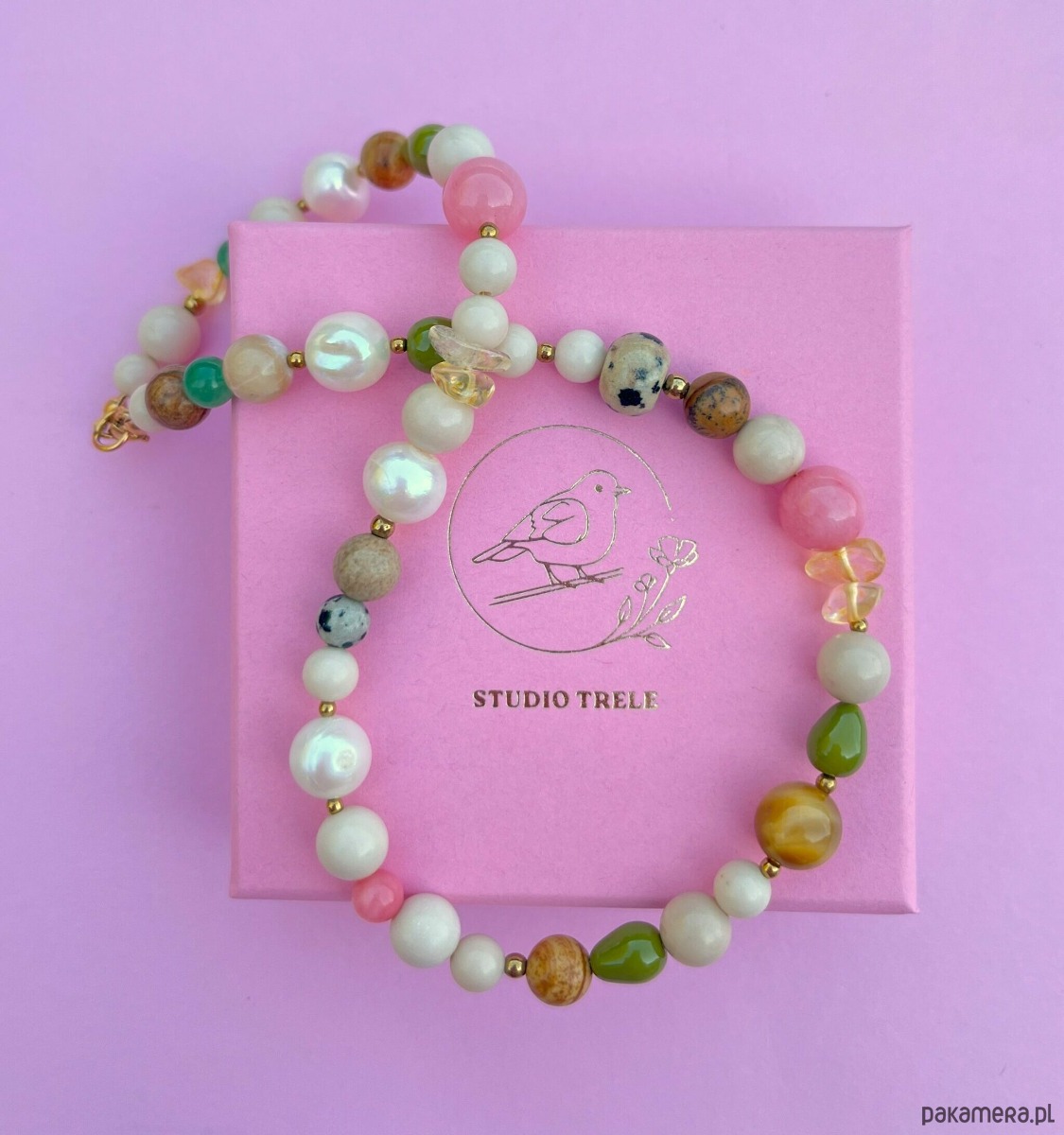 Naszyjnik Studia Trele – przepełniony kamieniami naturalnymi, kolorami, kształtami i niepowtarzalnym vibem! Jedyny w swoim rodzaju, doda Twojej stylizacji charakteru i przyciągnie spojrzenie każdego, kto ceni jakość.