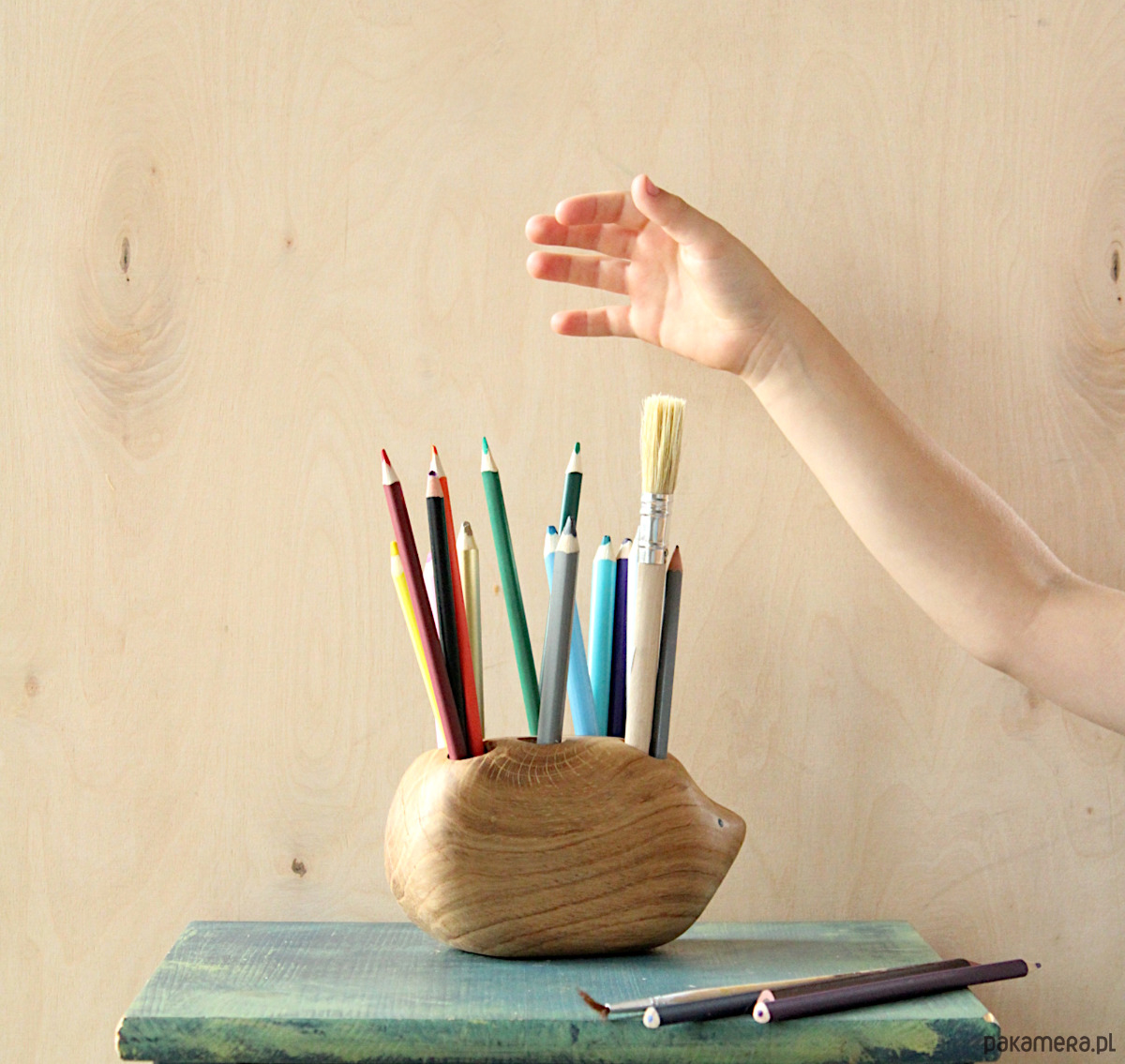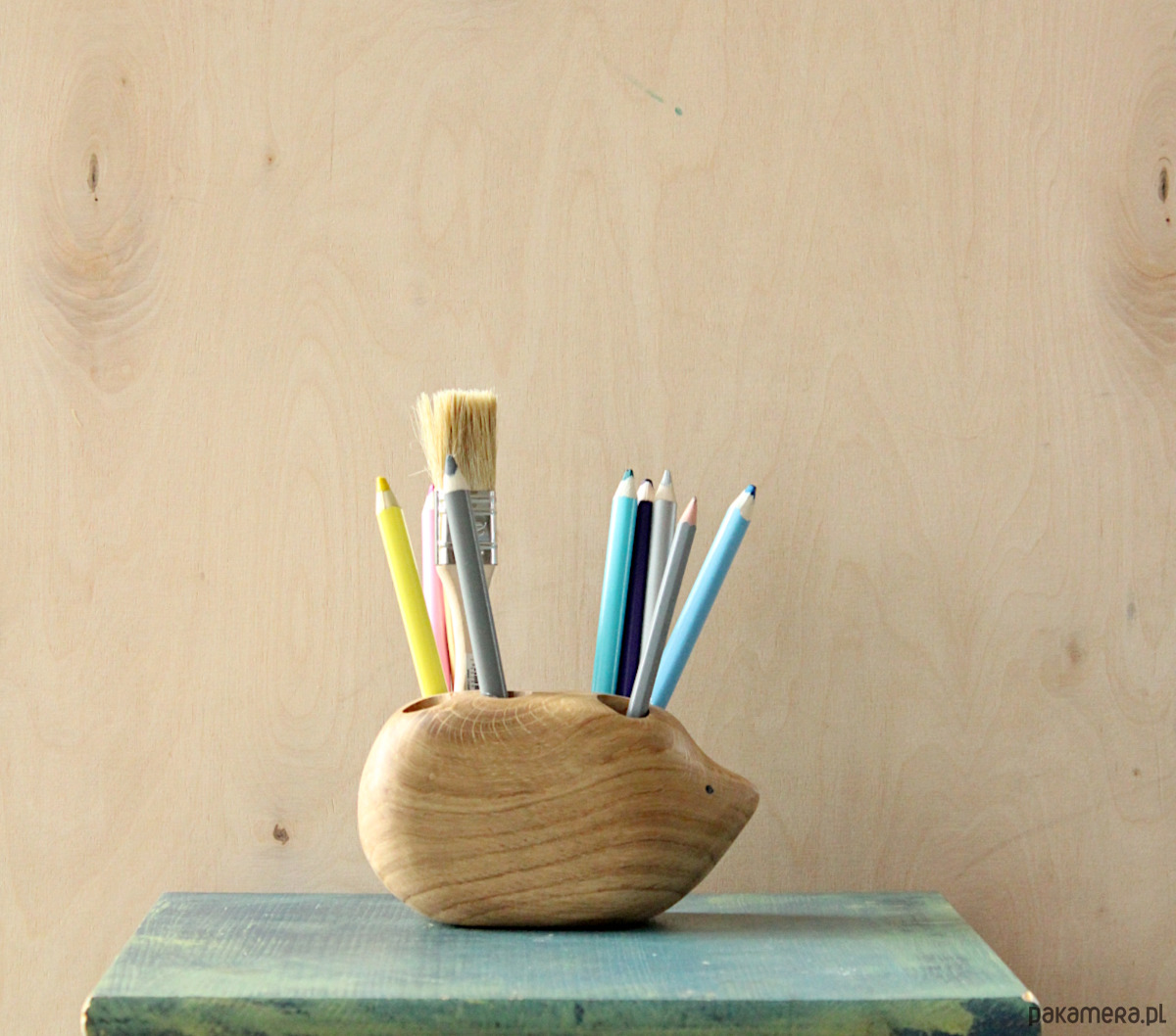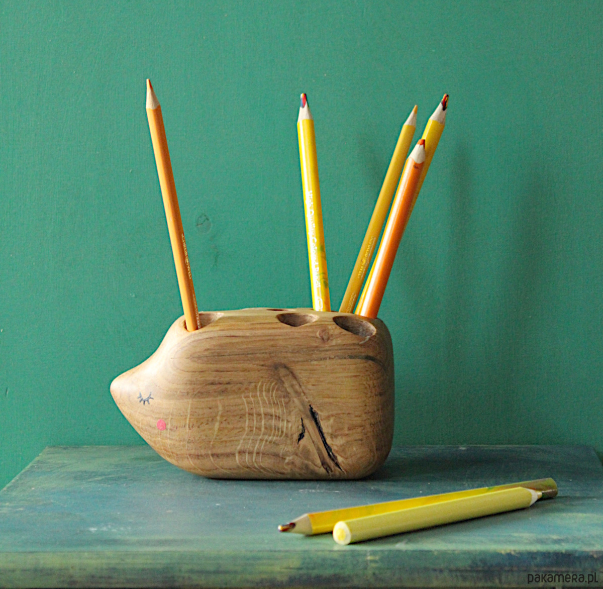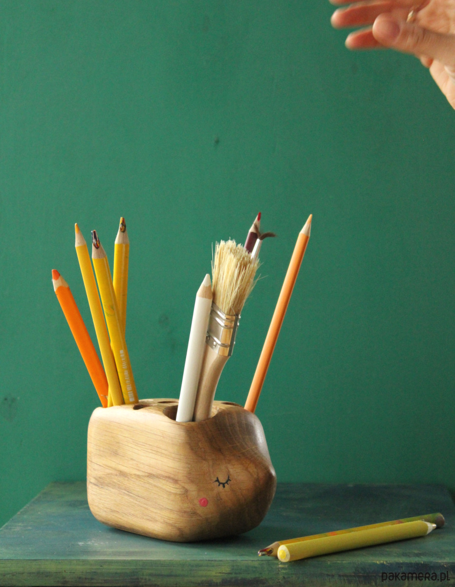 Jeż na kredki to unikatowy drewniany przybornik na biurko, w którym możesz przechowywać kredki/ długopisy/ pędzle/markery/ pisaki….