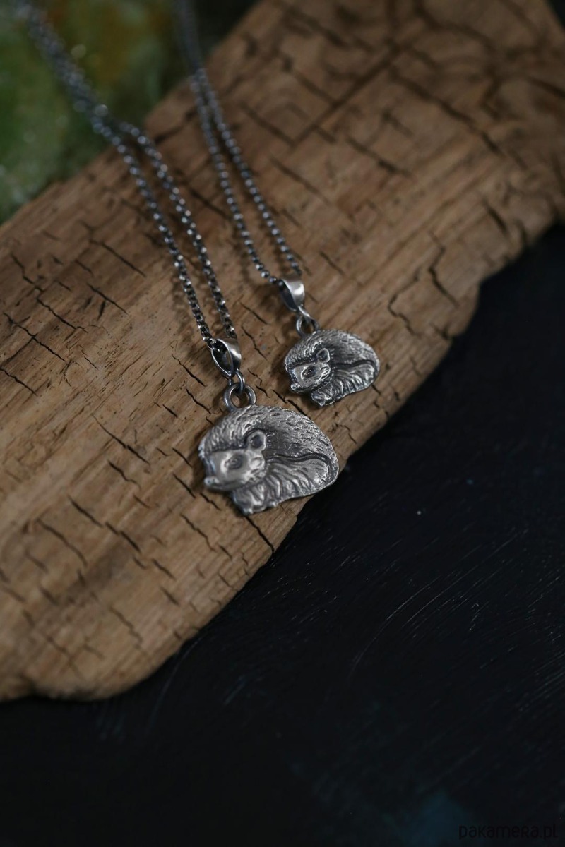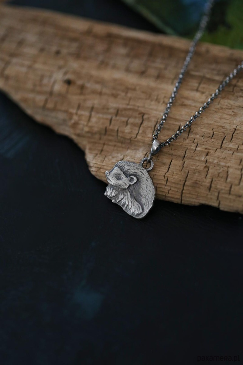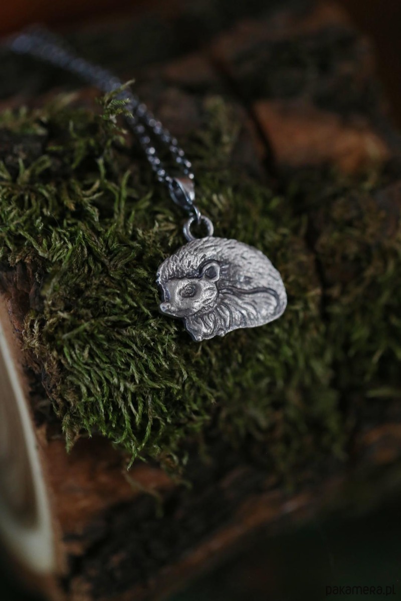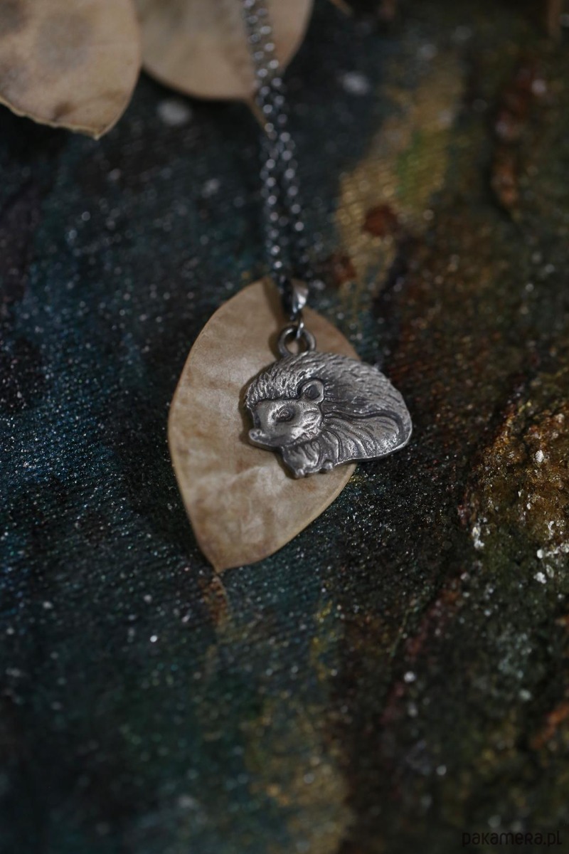 Jeż jest jednym ze zwierzaków spod znaku marki Cztery Humory. Wisiorek powstał według autorskiego projektu. Srebro pokryto oksydą, nadającą mu stalowo - szary odcień i przetarto dla wydobycia szczegółów zawieszki.