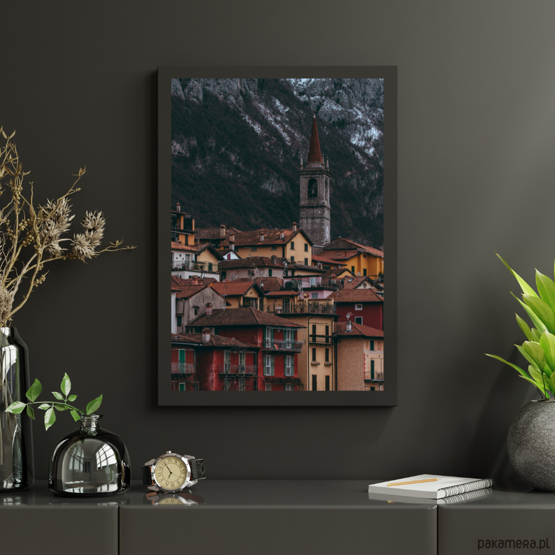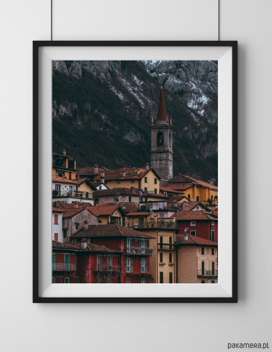 Autorska fotografia przedstawiająca zabudowania miasteczka Varenna nad Jeziorem Como.