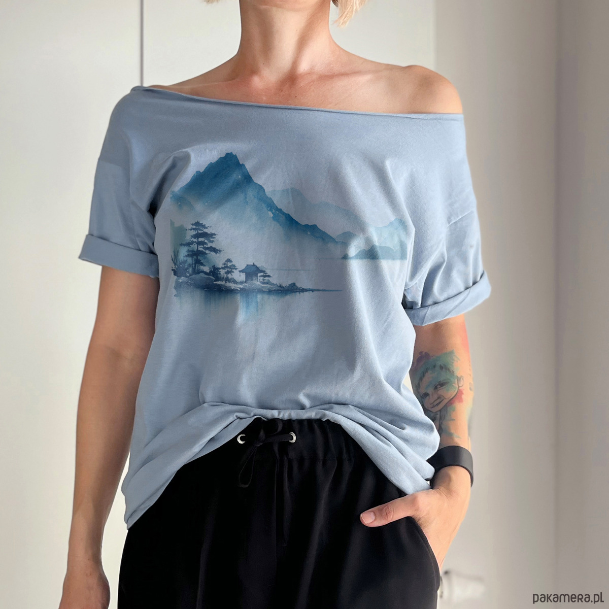 Lekka, luźna, kobieca koszulka. Tshirt z opadającym dekoltem.